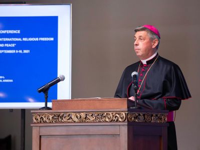 We are delighted to welcome you here to the spiritual Center of all Armenians in the Mother See of Holy Etchmiadzin. We bring our Pontifical Blessing on this conference entitled "International Religious Freedom and Peace".