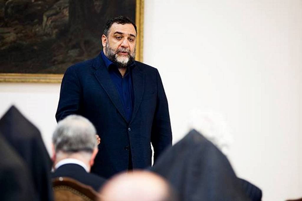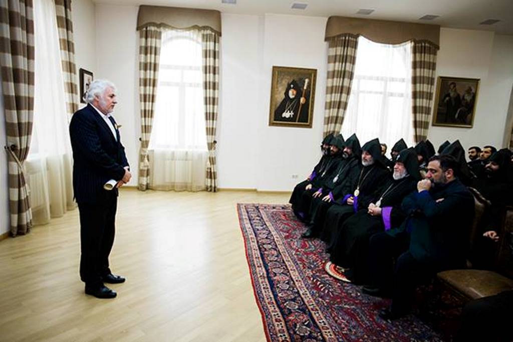 Mr. Rouben Vardanyan, benefactor of the Mother See and a member of the Supreme Spiritual Council presented a brief biography on Mr. Sarkisov, presenting his past and the extensive activities implemented by him in various sectors