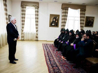 His Grace Bishop Vardan Navasardyan, Director of the Christian Education Center, read the Pontifical Encyclical. It stated in part: “We know you personally and are aware of your patriotic and church-building efforts. Through your diplomatic activities you're investing significant efforts in the task of the empowerment and advancement of our country and with kind donations you support to the implementation of various patriotic programs.