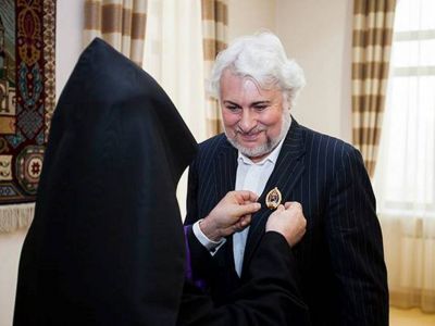 His Holiness Karekin II, Supreme Patriarch and Catholicos of All Armenians granted the Order of St. Gregory the Illuminator of the Armenian Apostolic Church to national philanthropist Mr. Sergey Sarkisov, Russian Federation, in appreciation of his philanthropic endeavors and service to the Armenian people and Armenian Church.