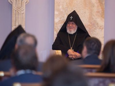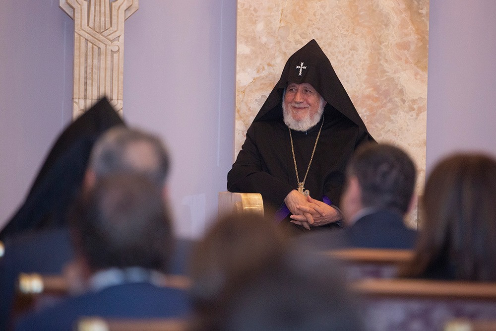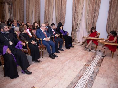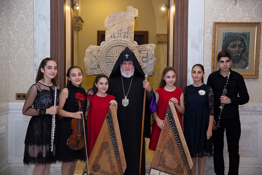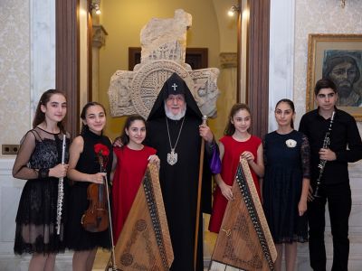 The young musicians of the "New Names" Program of Armenia performed a musical repertoire. The ceremony concluded with the Blessings and remarks of the Catholicos of All Armenians. His Holiness confirmed that he has known Mr. Karo Tertzakian for many years and is aware of his patriotic soul. The Catholicos of All Armenians stated that the famous doctor was able to convey his love towards the Homeland into blessings bringing usefulness to his native doctors. His Holiness also stated with joy that the patriotic doctor enjoys the love and respect of his colleagues via his work.