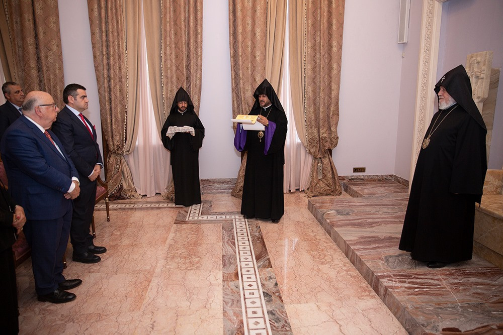 Following the reading of the Pontifical Encyclicals, His Holiness bestowed the recipient with the Armenian Church medal.