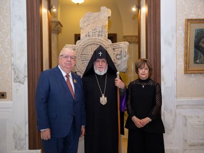 At the conclusion, conveying His congratulations and best wishes to Mr. and Mrs. Tertzakians, His Holiness Karekin II, Catholicos of All Armenians; prayed to the Almighty God to maintain and preserve the Tertzakians’ family under the auspices of His caring Right Hand and grant them longevity, new successes and all the best. His Holiness urged them to continue their patriotic and God-pleasing activity for the glory of God and for the well-being of the Fatherland.
