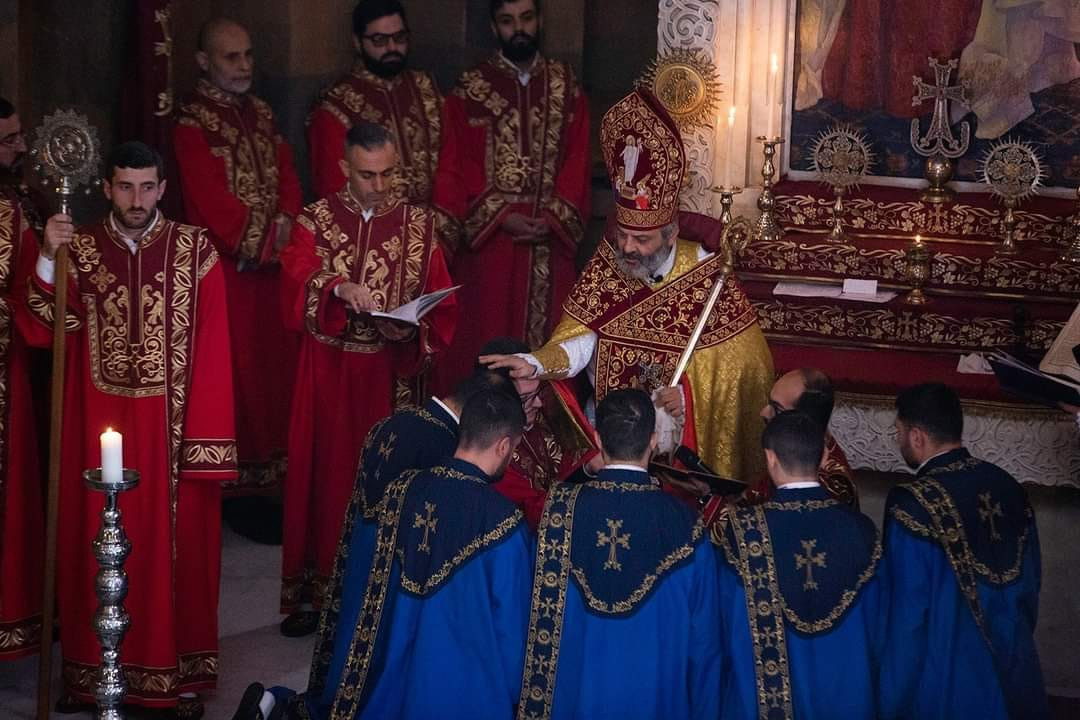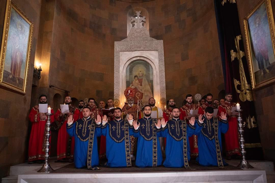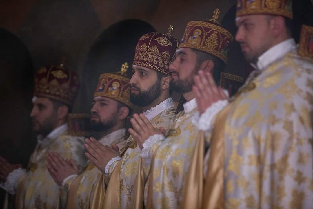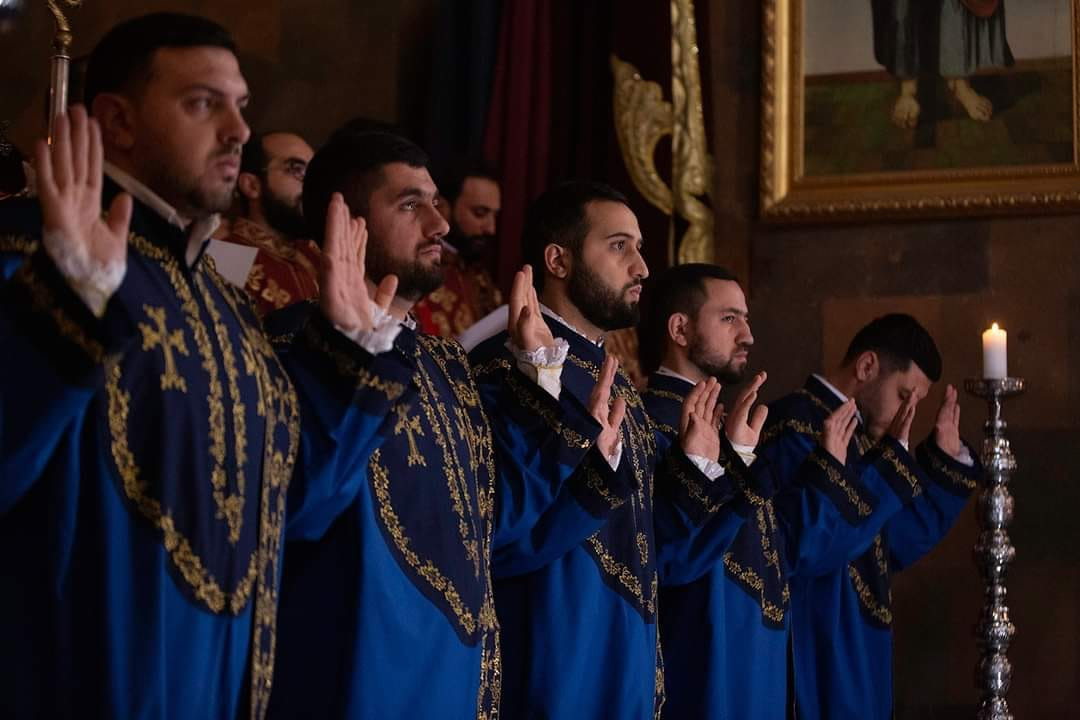 Deacon Levon hakobyan was renamed Father Harutyun; Deacon Arsen Sargsyan was renamed Father Vahram; Deacon Shavarsh Ayvazyan was renamed Father Narek; Deacon Davit Gishchyan was renamed Father Davit; Deacon Minas Karapetyan was renamed Father Abgar. Following the consecration, the priests offered their first blessings to the faithful present.