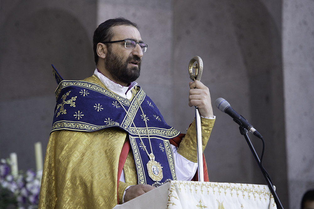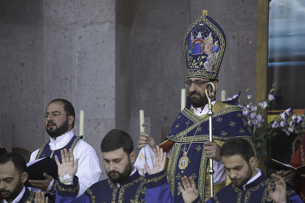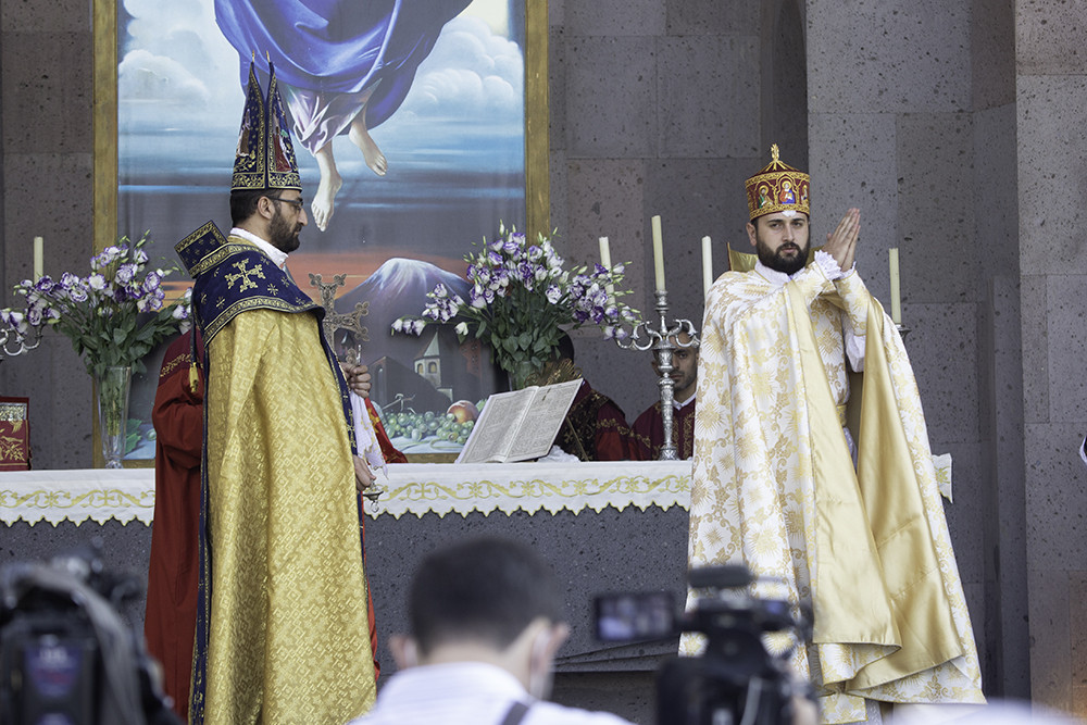 On September 13, the Armenian Apostolic Holy Church solemnly celebrated the last of the five Tabernacle Feasts, the Feast of the Exaltation of Holy Cross. On the occasion of the festive day, a Divine Liturgy was celebrated at the St. Trdat Open Air Altar in the Mother See of Holy Etchmiadzin. The celebrant was His Grace Bishop Arshak Khachatrian, Chancellor of the Mother See of Holy Etchmiadzin. With the Blessings of His Holiness Karekin II, Supreme Patriarch and Catholicos of All Armenians; during which the sacrament of ordination and anointment of deacons into the Holy Order of Priesthood was offered.. His Grace Bishop Arshak ordained four deacons serving to different structures of the Mother See to the priesthood.
