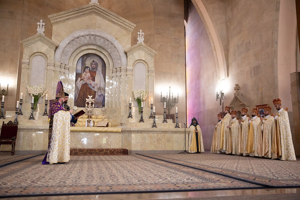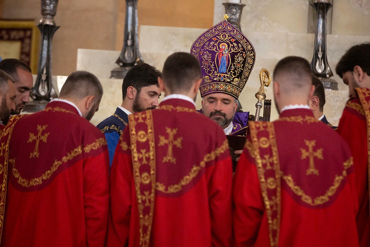 During the Divine Liturgy, seven deacons serving in various structures and dioceses of the Mother See were consecrated and ordained by His Grace Bishop Mesrop Parsamyan, Primate of the Eastern Diocese of the Armenian Church of North America.
