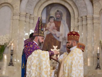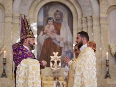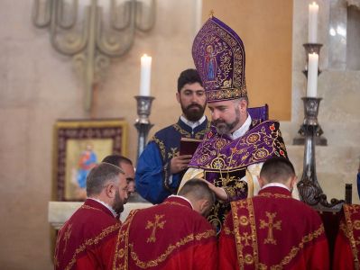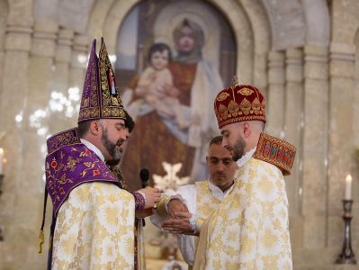 We receive the power, beloved, for one purpose, that you may be witnesses of our Lord Jesus Christ. You are priests who carry the graces and power of the Holy Spirit on your foreheads, hearts and hands, and you must testify to Christ in your families, in your city, in the world of Armenia and in different parts of the world," stated Bishop Mesrop, urging the newly ordained priest fathers to constantly testify to the love of Christ and donate their personalities to the brightness of the Armenian Apostolic Holy Church and to the glory of God.