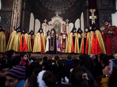 At the conclusion of the Blessing of Children service, His Holiness congratulated the children then spoke on the mystery of the Day, noting that today the soul of our Savior enters temples and churches where faithful children are united both from Armenia and abroad. His Holiness reflected on the participation of the Syrian-Armenian children, who left their native homes and because of the duress of the trials of war, left Syria and found refuge in their Homeland. The Armenian Patriarch asked Almighty God to pour His peace into the life of the nations who are bearing the sufferings of war in different parts of the world.