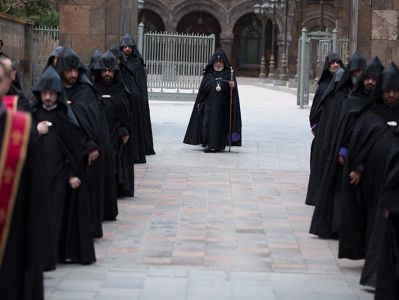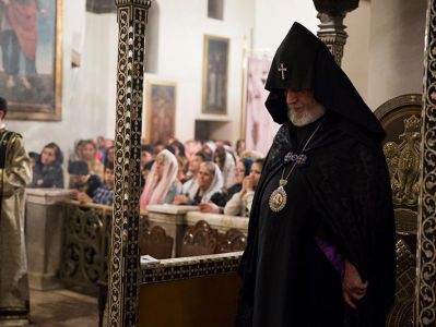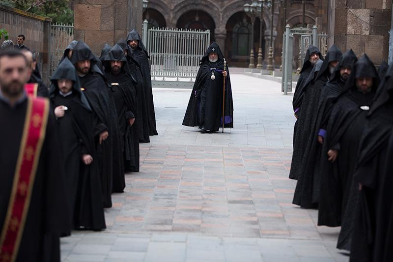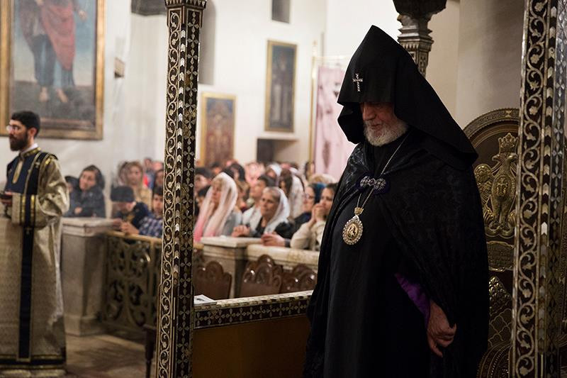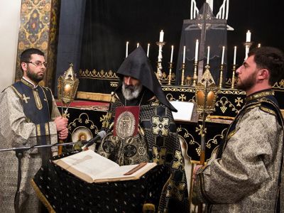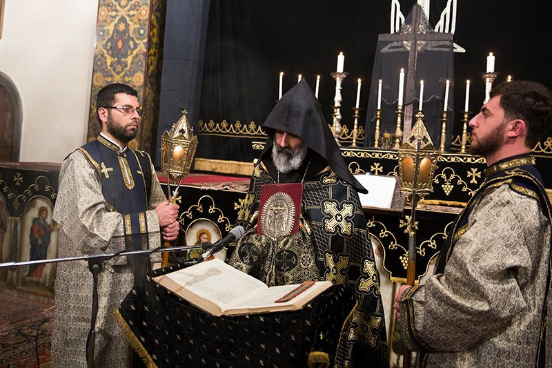…Today, we have united in this Sacred Cathedral not just to remember these historical events, not to confirm their historical authenticity but to survive these events, to share His sufferings, we have come to communicate His sufferings. We feel the sounds of pain and suffering that embarrassed Christ at His moments of torture, we hear the blood, the sweat that became His prayers, His emotions, His torture, and complaints of the soul. Today, in this Holy Church, we are covered with the same complaints and worries, so that we may share the suffering of Christ, our Lord… Christ endlessly loved the joy, but he was never afraid of cry and sorrow. Christ loved the light, but never feared the darkness, he loved and dedicated Himself to victory”, stated Bishop Arshak.