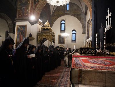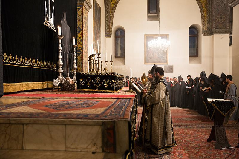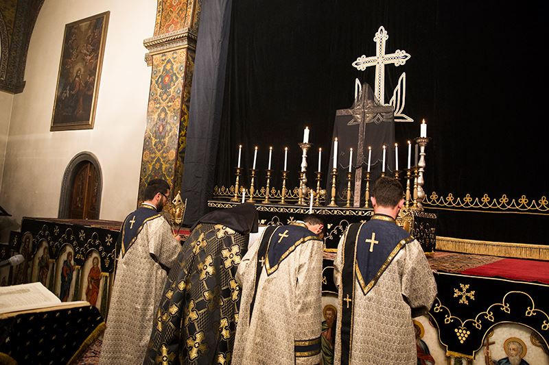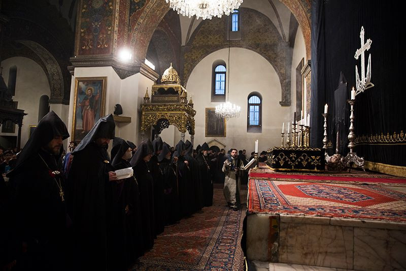 On 29 March, in the late evening, the Passion Service was offered in the Mother Cathedral, under the presidency of His Holiness Karekin II, Supreme Patriarch and Catholicos of All Armenians. The services on Holy Friday are dedicated to the sufferings, crucifixion, death and burial of Jesus Christ.