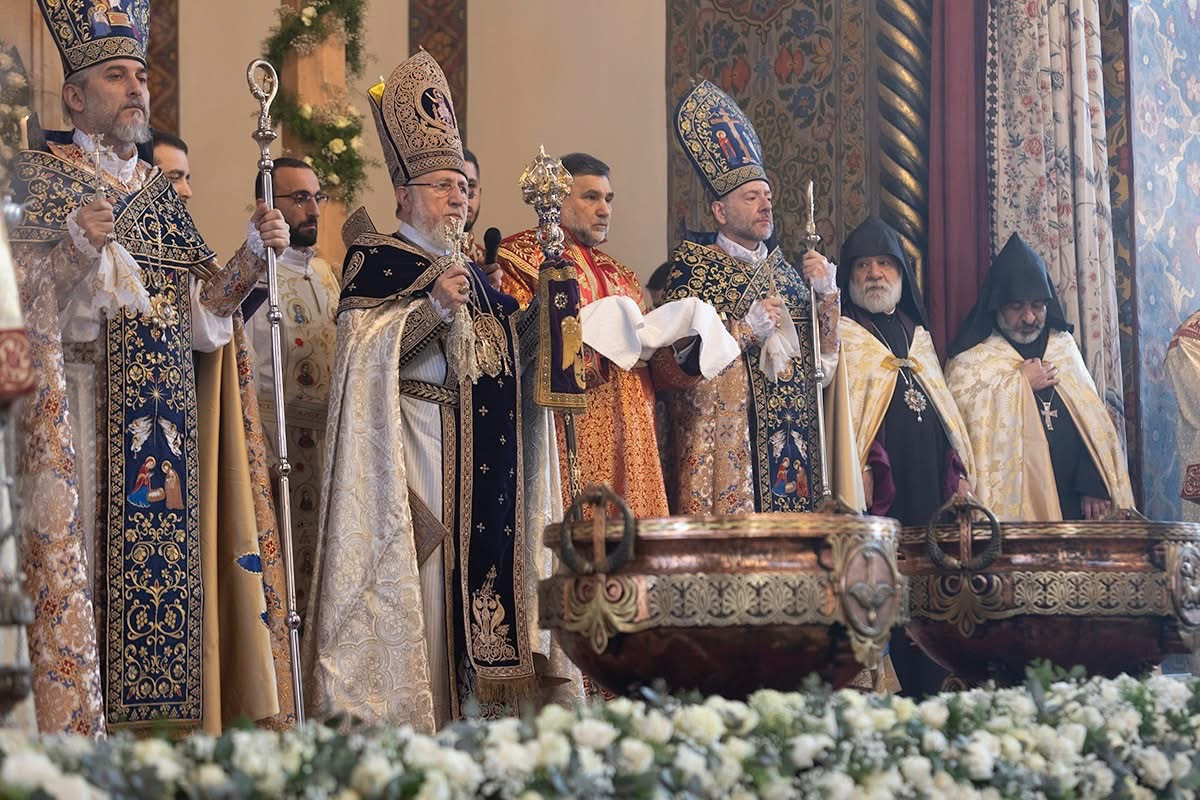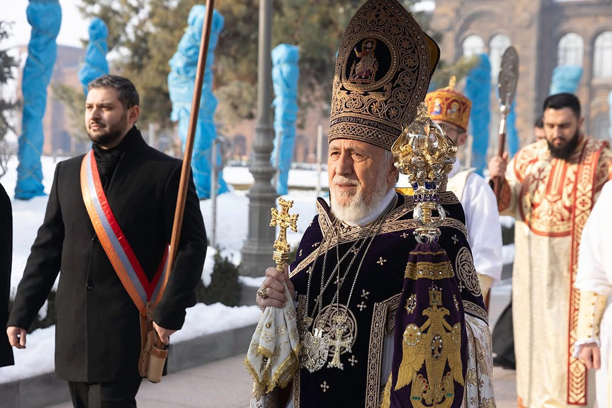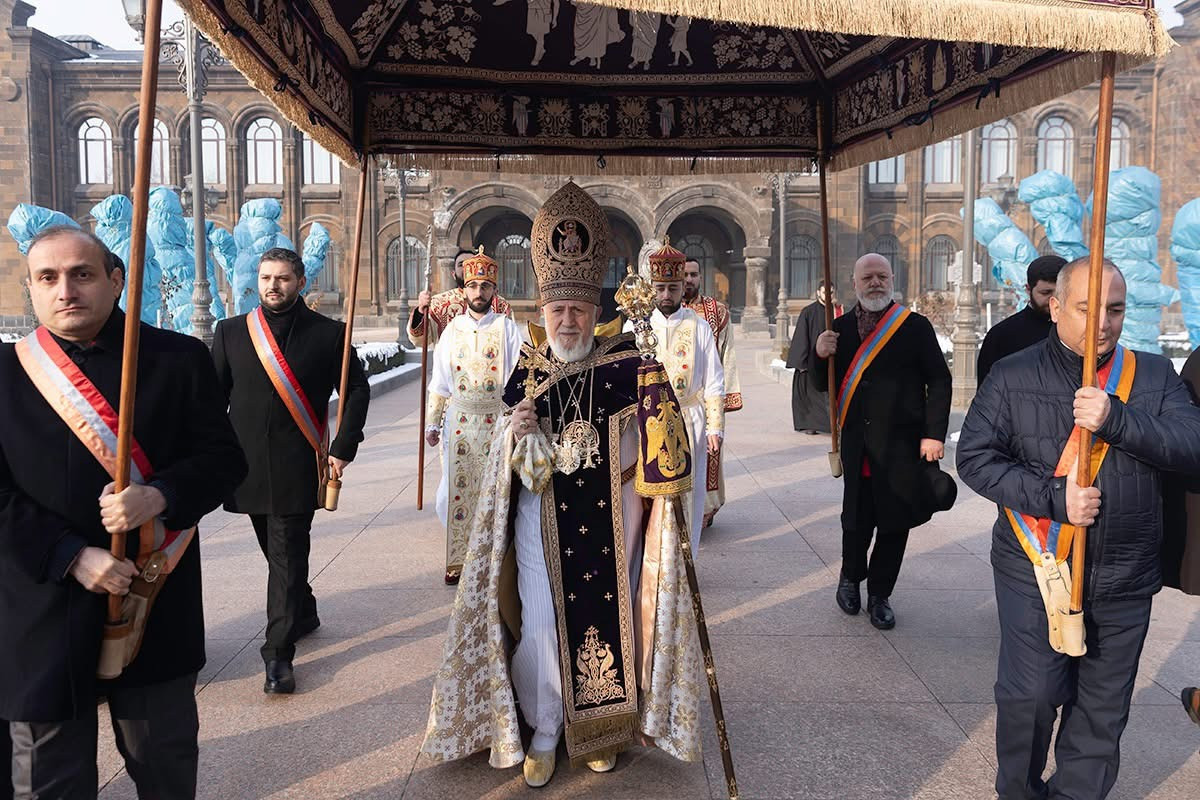 Dear ones, deviation from this Christ-marked path turns the world into a stage of injustice, misery, and calamity; it plunges it into the darkness of delusion and leads to the distortion of personal and social life, the perversion and destruction of values, manifestations of which we also witness in our own reality. Today, faith and trust toward one another are weakening; disrespectful and unrestrained behavior is perceived as courage; freedom of speech is met with intolerance toward dissenting views; dialogue is reduced to insults and defamation; and the common good, patriotic and selfless service, is subordinated to narrow personal and group interests. Our Holy Church continues to be subjected to oppression. This situation is a serious blow to the authority of our nation and state and a deep wound inflicted upon communities and believers. Despite unlawful and anti-canonical actions, our Holy Church, together with its devout people, remains firm and unshaken, faithful to its God-given calling and mission. The Armenian Church is holy and sanctifying, founded through the preaching of our Lord Jesus Christ’s holy Apostles Thaddeus and Bartholomew as a “place of purification for humankind, a dwelling of angels, and the house of God.” Throughout the course of history, our Apostolic Mother Church has been subjected to numerous assaults, has passed through dreadful trials and sufferings, has been martyred and sacrificed, yet has never become captive to despair, for she has understood that true freedom and salvation are found in obedience to Christ and in placing trust in Him. Life in Christ is filled with love and mercy, integrity and justice. Christ is the Way from darkness to light, from sin to holiness.