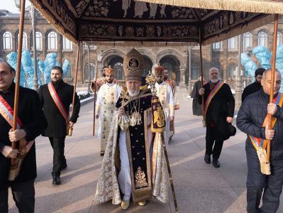 On this hope-filled day of the Holy Nativity and Theophany, let us raise prayer to our Savior Lord, imploring that peace may reign throughout the world and within the borders of our homeland, and that our state may be strengthened in security and prosperity, and our people may endure in well-being. Let us raise our suplication for the perseverance and strength of spirit of our Artsakh Armenian children who have been deprived of their homeland, and for the restoration of their violated rights. Let us pray for the soldiers who defend the homeland, for the repose of the souls of our brave sons who have fallen for the homeland, and for the consolation of their parents and loved ones. Let us pray for the clergy who have been unlawfully deprived of their freedom; for the national benefactor and devoted sons of the Armenian people; and also for our children who are in captivity or listed as missing. May our lives, under the protection of the Holy Right Hand of the Most High, remain illumined by the divine presence, adorned with faithful good works, and may we with gratitude glorify our incarnate Savior and Lord, now and always and unto the ages of ages. Amen.