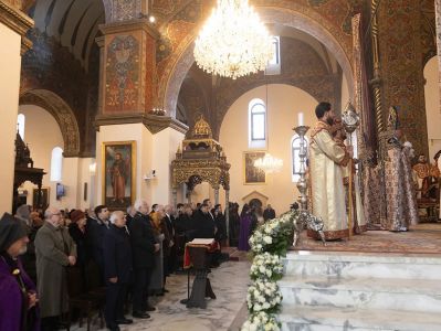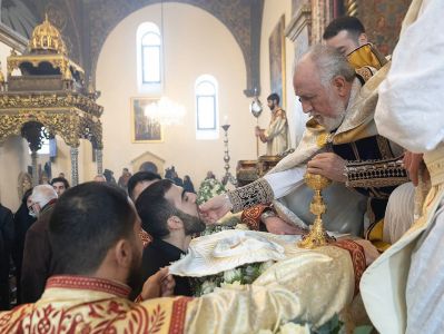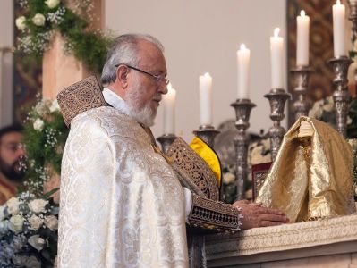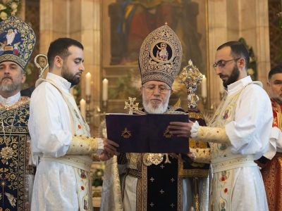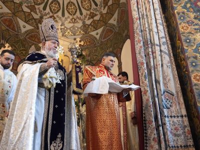 During the sacred service, His Holiness was assisted by His Grace Bishop Mushegh Babayan and His Grace Bishop Daniel Fintigyan.