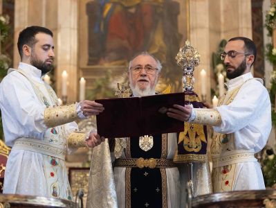 With the joyous glad tidings of the Holy Nativity to the Heads of the Hierarchical Sees of our Holy Church: His Holiness Aram I, Catholicos of the Great House of Cilicia; His Beatitude Archbishop Nourhan Manougian, Armenian Patriarch of Jerusalem; and His Beatitude Archbishop Sahak Mashalian, Armenian Patriarch of Constantinople. In Christ’s love we greet the Heads of the sister Churches, imploring the support of the incarnate Savior in their God-entrusted mission. We extend Our pontifical blessing and good wishes to the entire clergy of our Holy Church and to all Our faithful people in the homeland and in the diaspora.