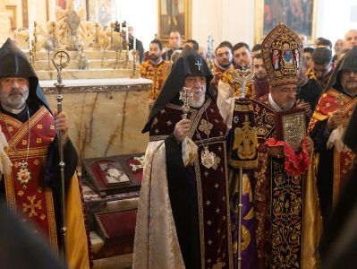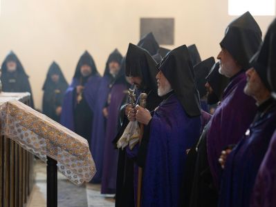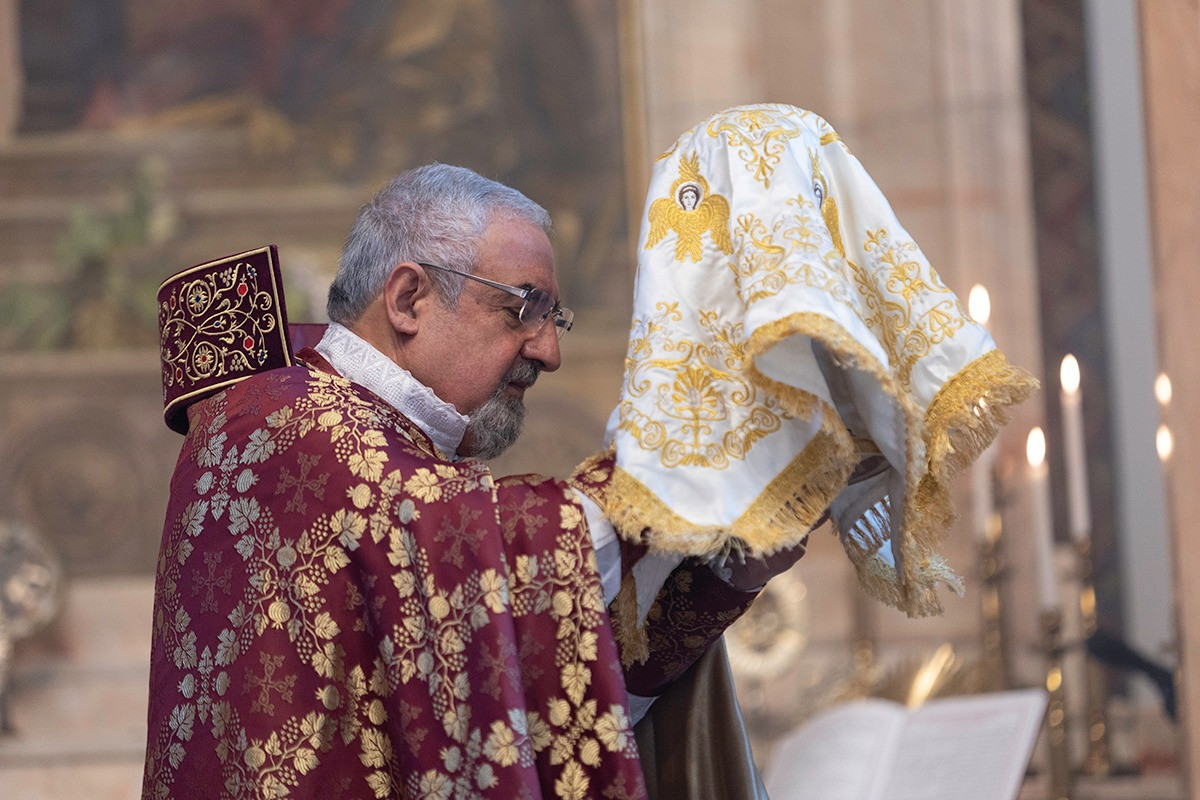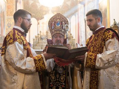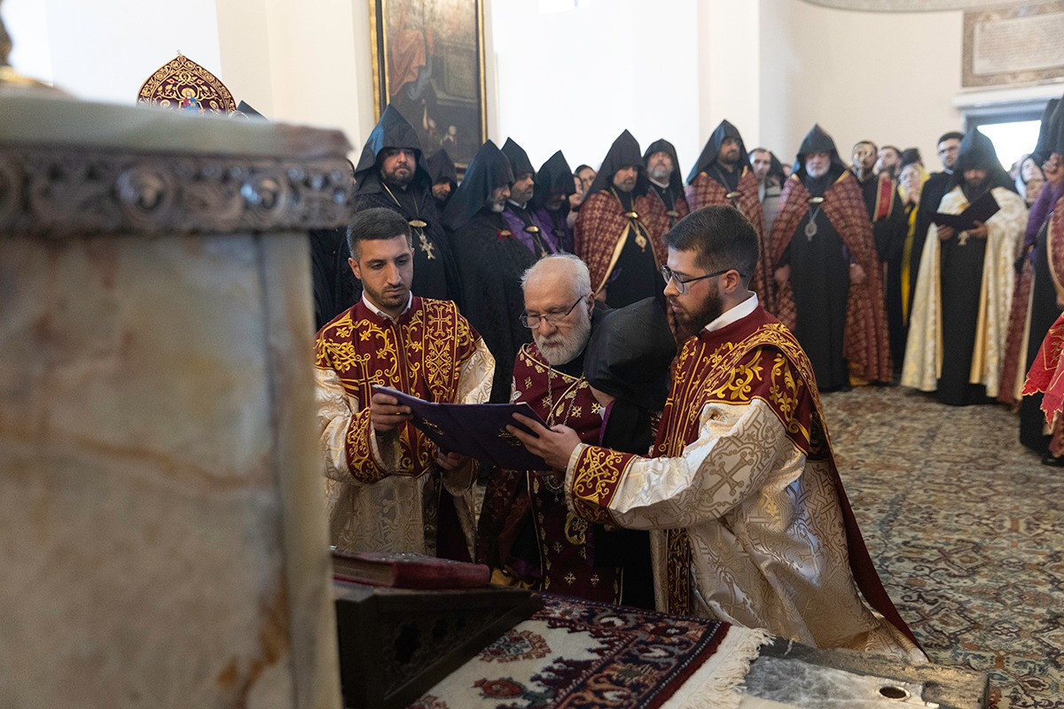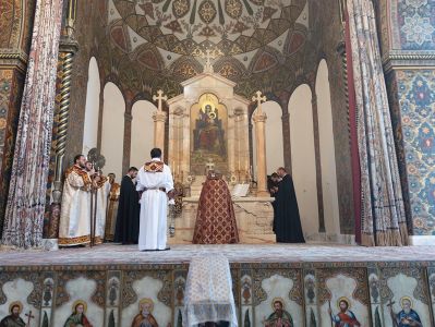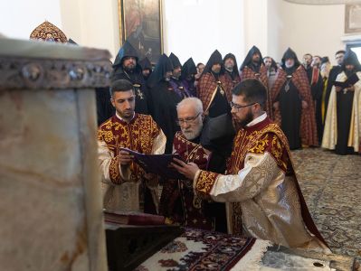 Present at the solemn ceremony were the diocesan primates of the Armenian Church, members of the Supreme Spiritual Council, the clergy of the Mother See of Holy Etchmiadzin, and Armenian pilgrims. The Divine Liturgy was celebrated by His Eminence Archbishop Haykazun Najarian, a congregant of the Mother See.