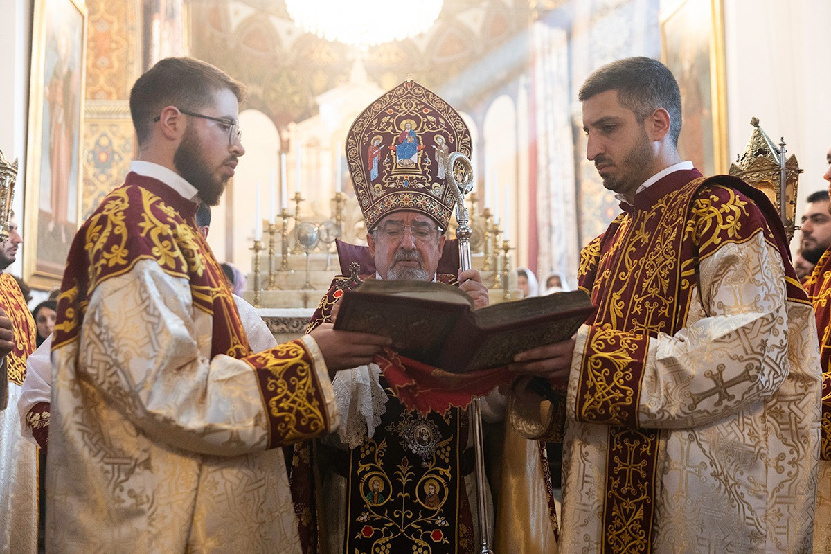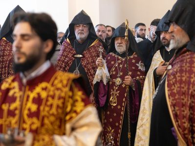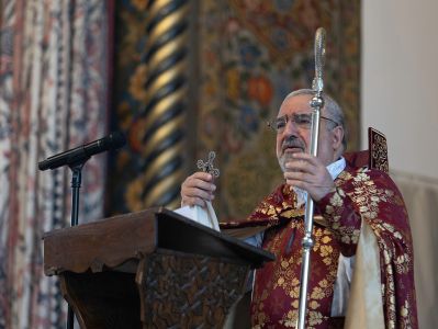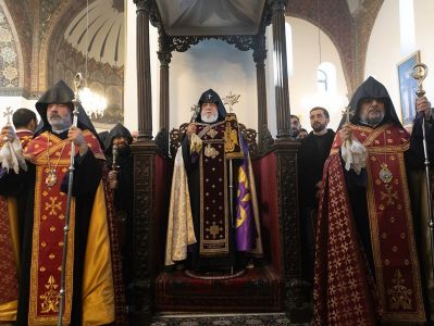 In his sermon, the Celebrant congratulated His Holiness on the anniversary of his consecration and enthronement. Archbishop Haykazun commended the fruitful activity and numerous accomplishments of Karekin II in the spiritual, cultural, educational, and church-building spheres, offering prayers for the steadfast and unwavering shepherding ministry of His Holiness for the glory of the Armenian Apostolic Holy Church, for the comfort of the God-loving people, and for the well-being of the Homeland.