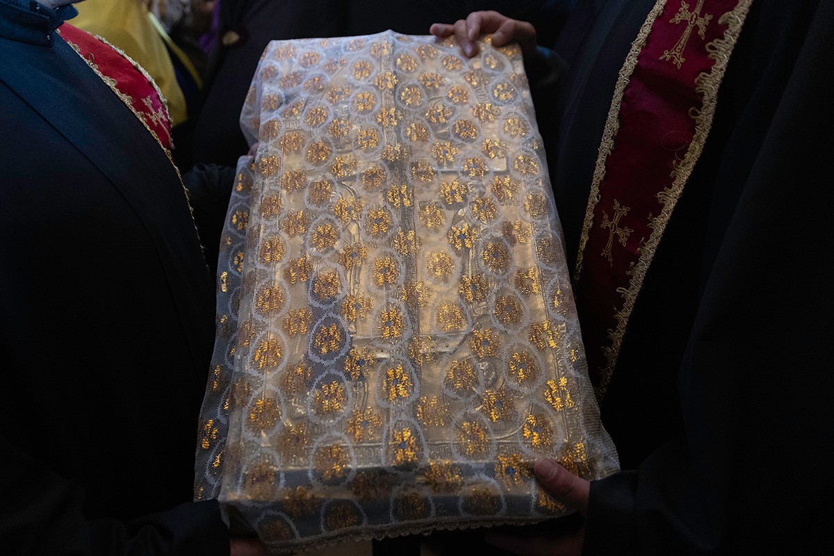 In accordance with the established order, the reliquary containing the holy relics of Skevra was brought out for the veneration of the faithful.