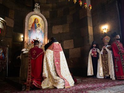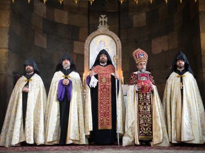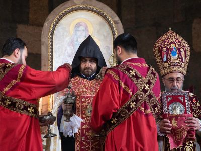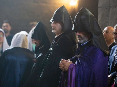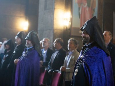 At the conclusion of the Divine Liturgy, on the occasion of the First Republic Day, a Republican Prayer was also offered in the Saint Gayane Monastery. The service was presided over by His Eminence Archbishop Arshak Khachatryan Chancellor of the Mother See of Holy Etchmiadzin. The clergymen and the attending faithful raised a prayer to God for the steadfastness, construction and peaceful and prosperous life of the Republic of Armenia.