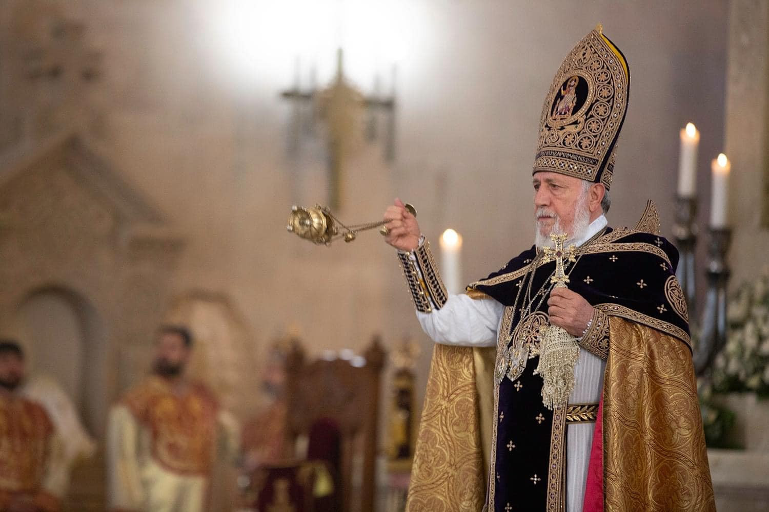 At this sacred moment of the Divine Liturgy we address our pontifical message to our brave and courageous sons and daughters of Artsakh. Dear people of Artsakh, the thoughts and gazes of our people these days are mainly directed towards you. You have never given up and never backed down in the face of difficulties. Today as well you continue to fight heroically for your free and independent life, for the sake of restoration of historical justice. Following the glorious example of your brave ancestors, remain firm and unshaken in your determination to live and create in your native land. Our Holy Church with its worldwide dioceses is with you, assisting and supporting you. The just demand for the protection of your fundamental rights will prevail with the efforts of all Armenians, and with the support of the international community. We believe, that with God’s mercy, our people will shine a light in the darkness surrounding them and will overcome the most serious challenges they face in their lives.