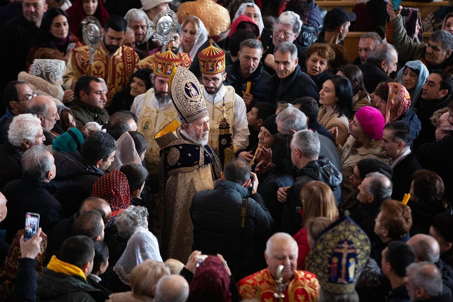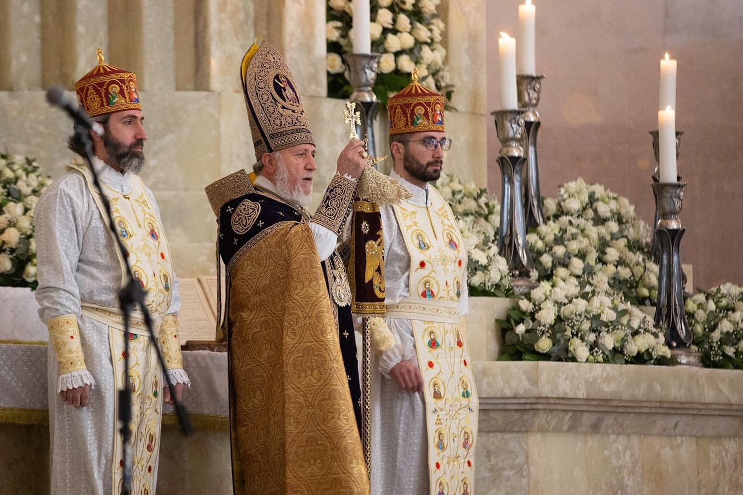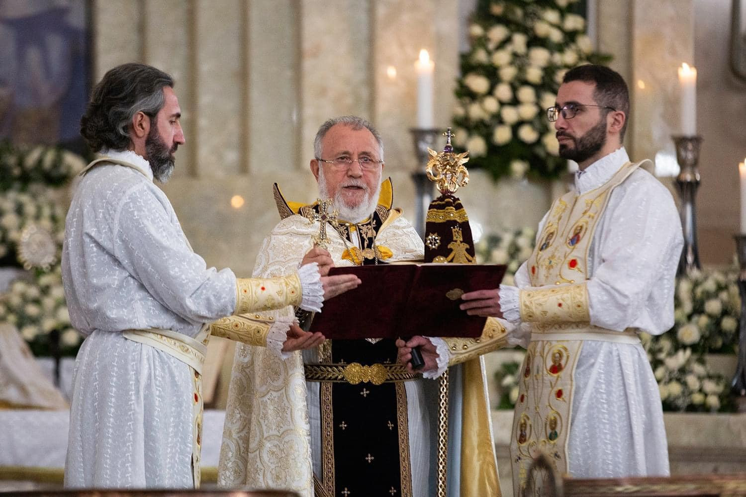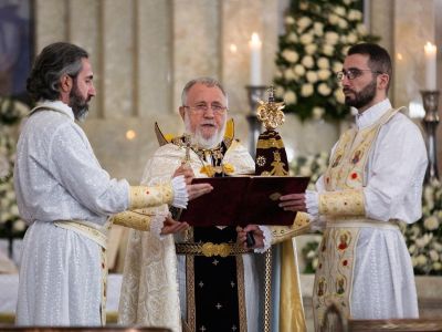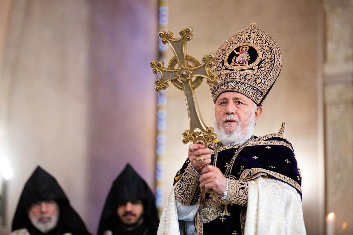 With these feelings and thoughts, and the angelic tidings of the Nativity, we bring our greetings to the incumbents of the Hierarchical Sees of our Holy Church: the Catholicos of the Great House of Cilicia, His Holiness Aram I; the Armenian Patriarch of Jerusalem, His Beatitude Archbishop Nourhan Manougian; and the Armenian Patriarch of Constantinople, His Beatitude Archbishop Sahak Mashalyan; wishing that God support them in the Christ-bestowed ministry.