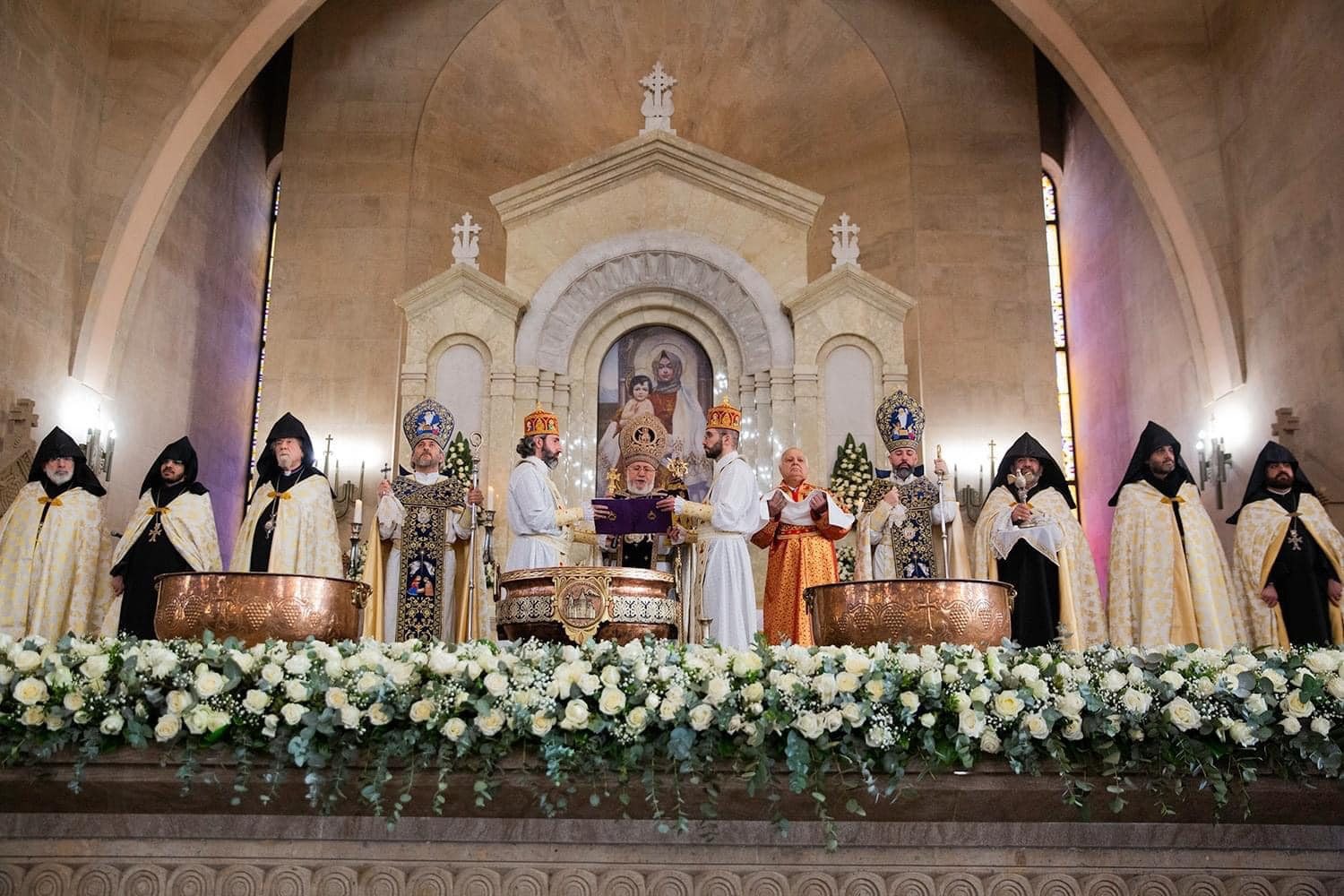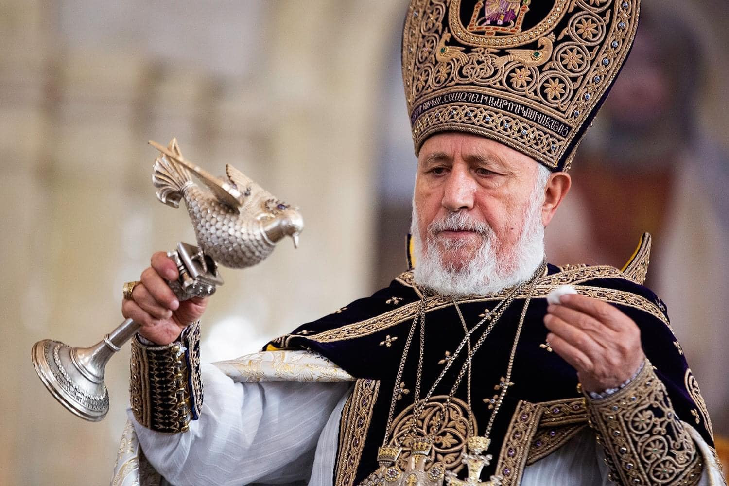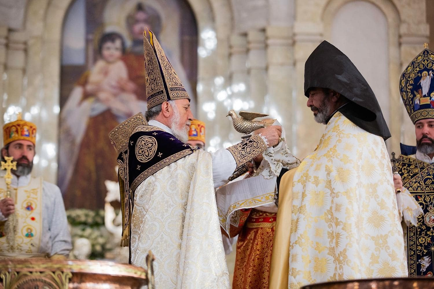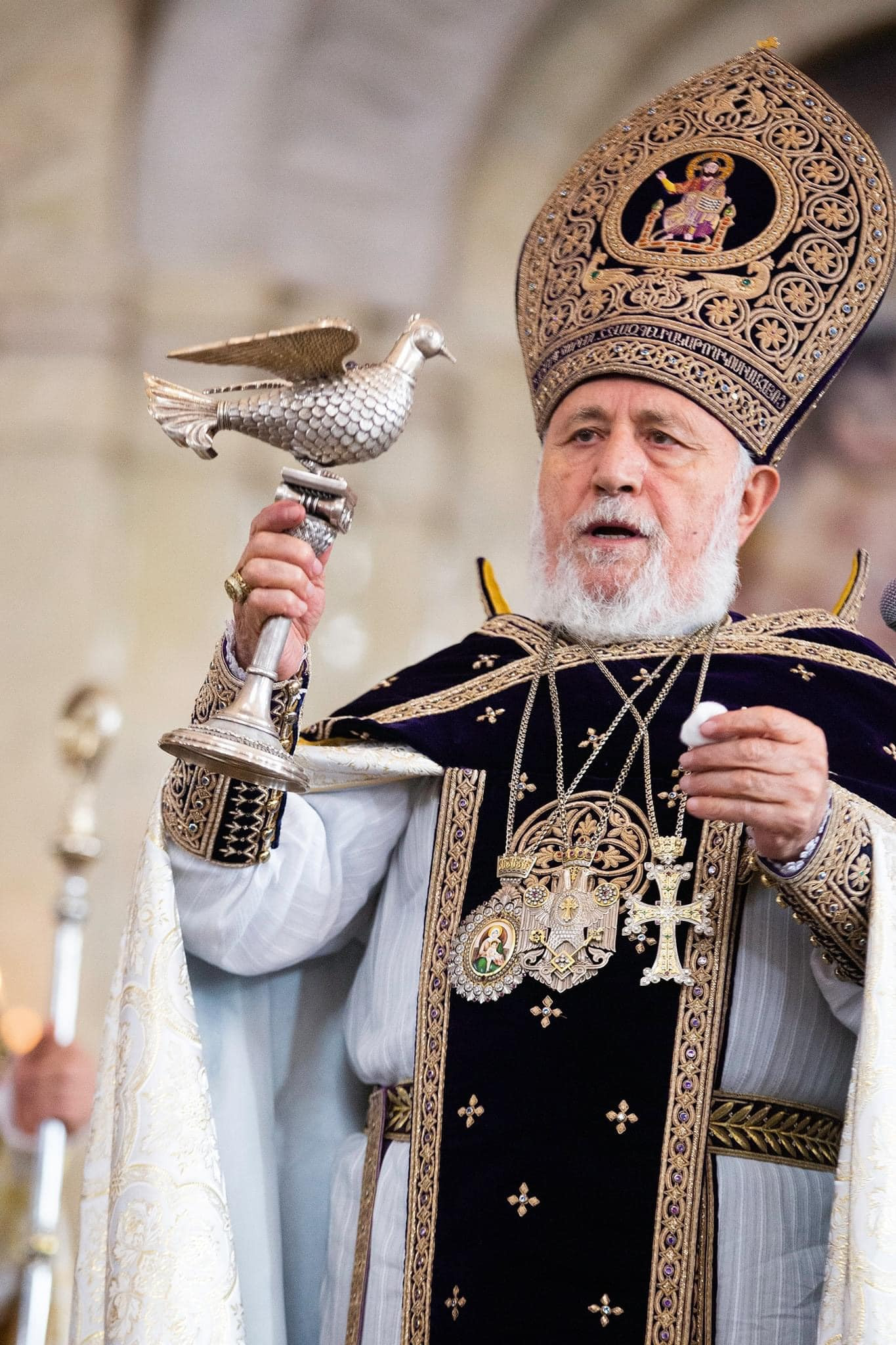 With these feelings and thoughts, and the angelic tidings of the Nativity, we bring our greetings to the incumbents of the Hierarchical Sees of our Holy Church: the Catholicos of the Great House of Cilicia, His Holiness Aram I; the Armenian Patriarch of Jerusalem, His Beatitude Archbishop Nourhan Manougian; and the Armenian Patriarch of Constantinople, His Beatitude Archbishop Sahak Mashalyan; wishing that God support them in the Christ-bestowed ministry.