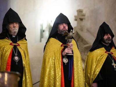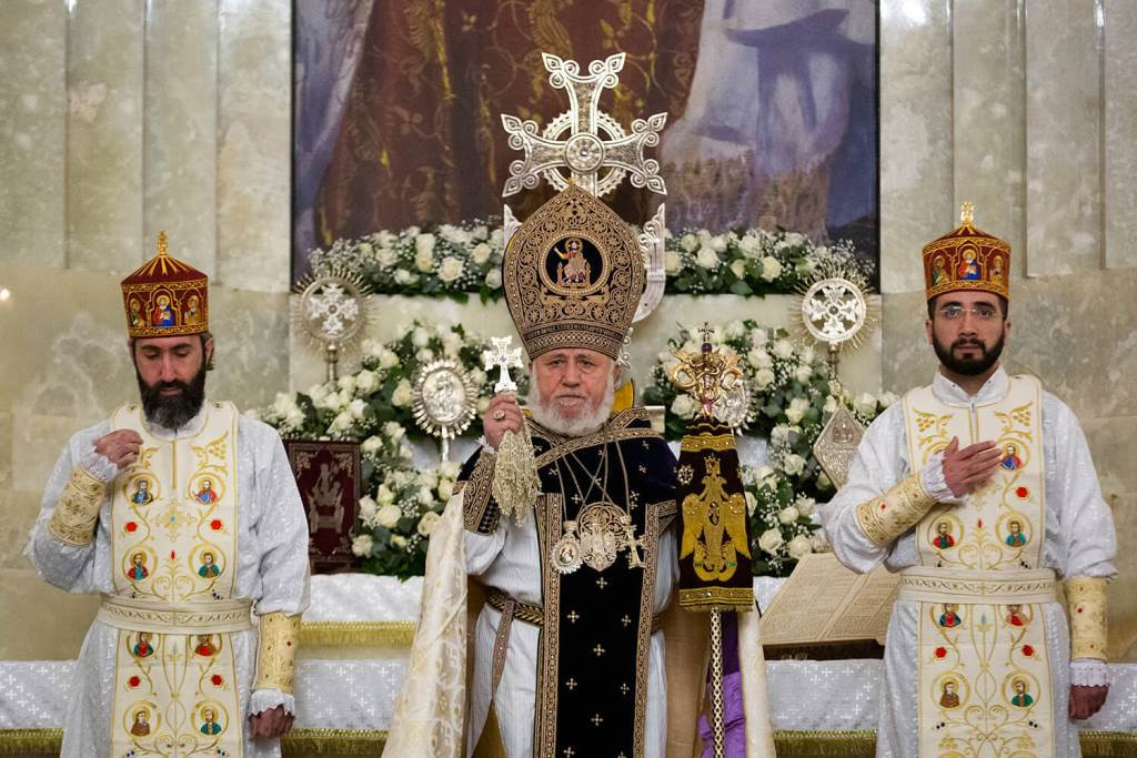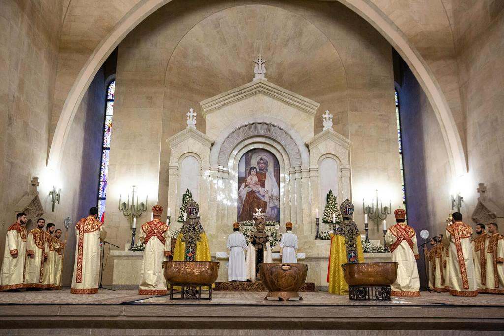 On this soul-renewing day of the Nativity and Epiphany, let us ask so that that we may go towards the realization of our aspirations, relying on the grace of God's salvation and the crowning of the victory of our just rights. Let us pray that the vault of our national life will be illuminated with the heralding light of Christmas, that the Armenian church will eternally be enhanced through the dedicated and fruitful ministry of our clergy and the committed life of our faithful people, so that Armenia may be filled with the love and hope of the incarnate Savior. May the Lord grant peace to the entire world, to the souls of the people, and keep in peace and safety our country - Armenia and Artsakh, and to grant a prosperous life to the Armenian people all over the world, today, always, forever. Amen.