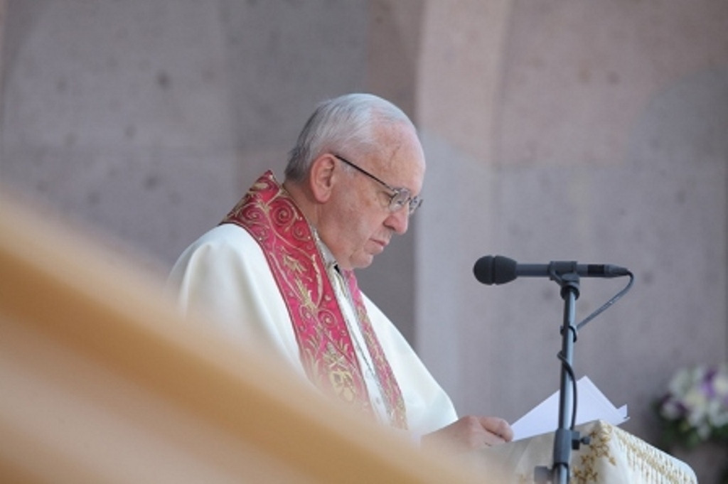 During this Divine Liturgy, the solemn chant of the Trisagion rose to heaven, acclaiming God’s holiness. May abundant blessings of the Most High fill the earth through the intercession of the Mother of God, the great saints and doctors, the martyrs, especially the many whom you canonized last year in this place. May “the Only Begotten who descended here” bless our journey. May the Holy Spirit make all believers one heart and soul; may he come to re-establish us in unity. For this I once more invoke the Holy Spirit, making my own the splendid words that are part of your Liturgy. Come, Holy Spirit, you “who intercede with ceaseless sighs to the merciful Father, you who watch over the saints and purify sinners”, bestow on us your fire of love and unity, and “may the cause of our scandal be dissolved by this love” (Gregory of Narek, Book of Lamentations, 33, 5), above all the lack of unity among Christ’s disciples.