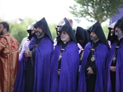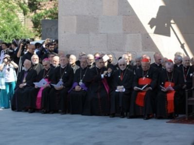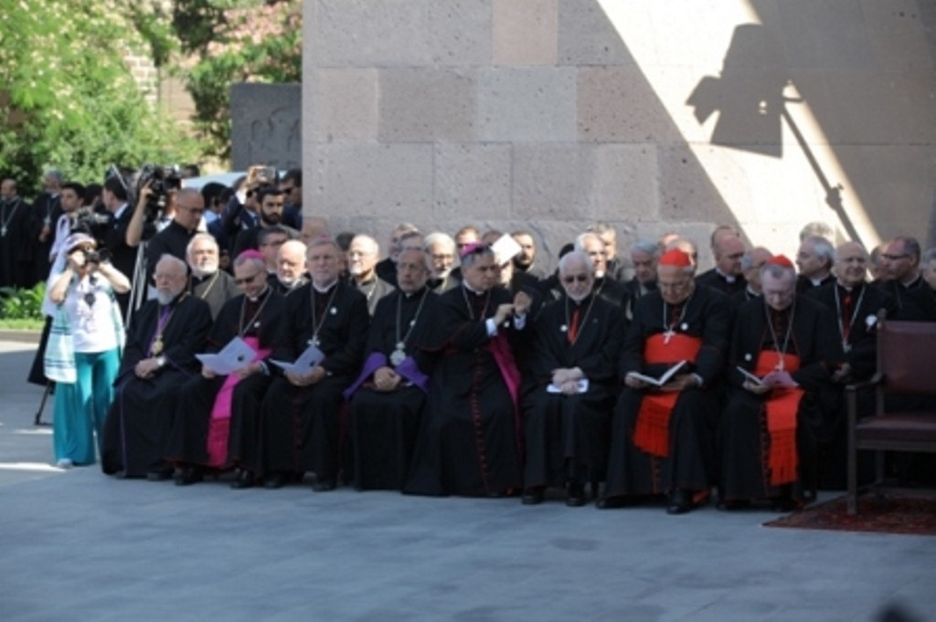 The Pontifical Divine Liturgy was attended by Mr. Serzh Sarkisyan, President of the Republic of Armenia and First Lady Ms. Rita Sarkisyan; Mr. Galust Sahakyan, RA National Assembly President; Mr. Hovik Abrahamyan, RA Prime Minister; Diocesan Primates of the Armenian Apostolic Holy Church; Supreme Spiritual Council members; Mr. Berge Setrakian, AGBU President; benefactors of Mother See of Holy Etchmiadzin; delegates from dioceses around the world; social and cultural figures; representatives of the diplomatic missions and international organizations and numerous pilgrims from Armenia and Diaspora.