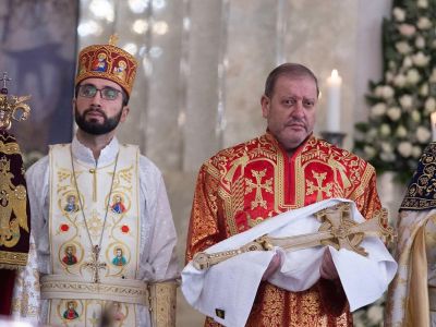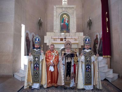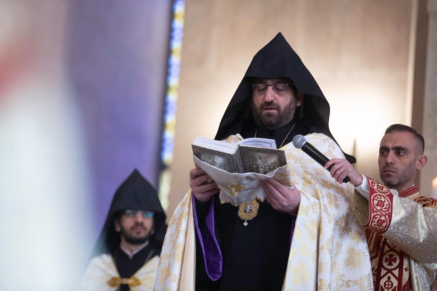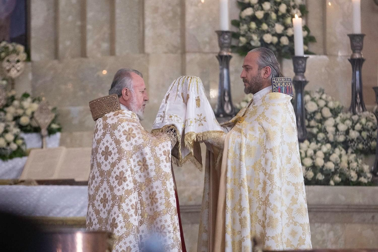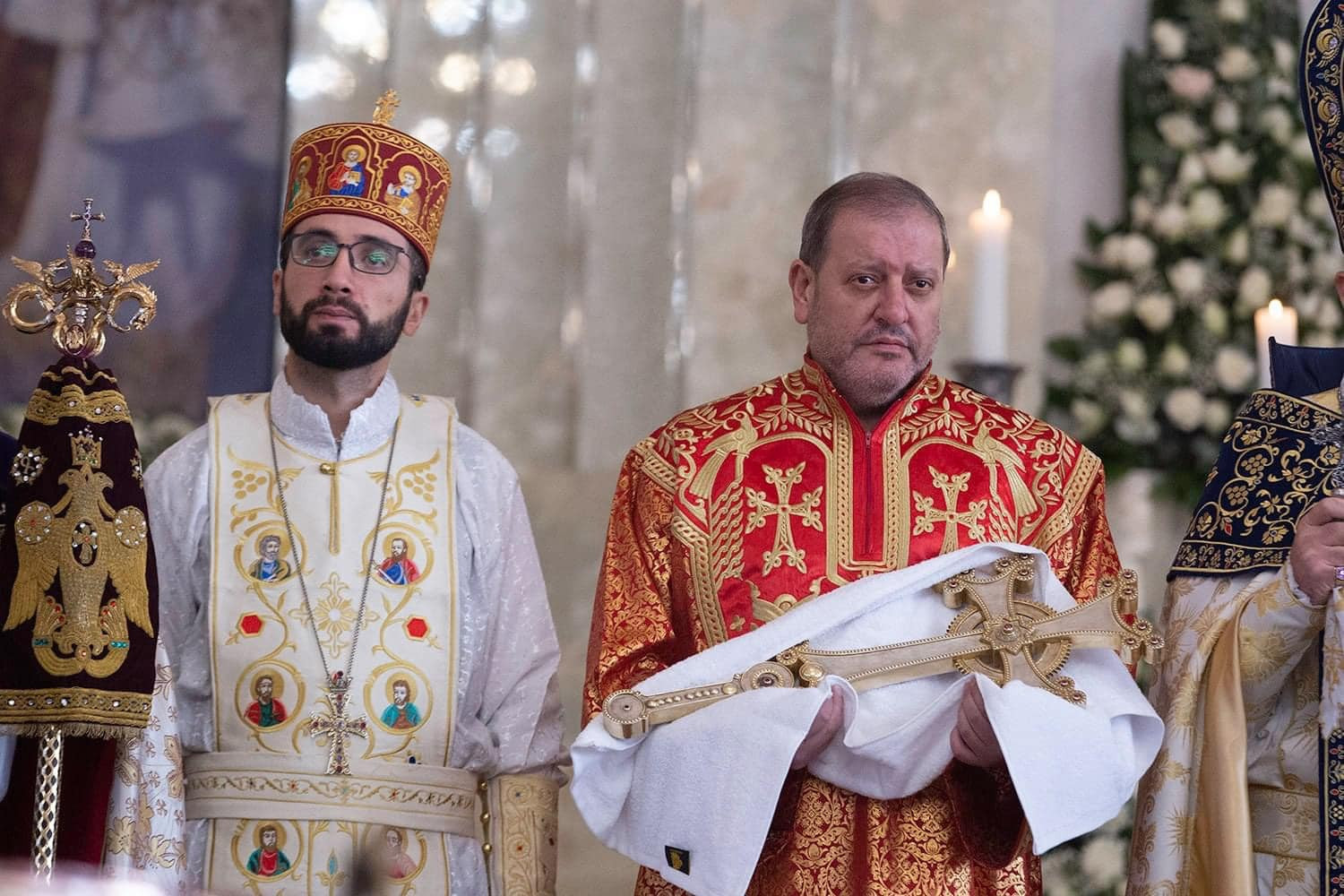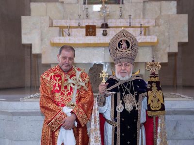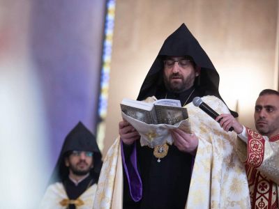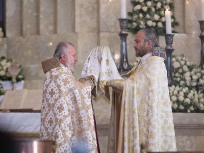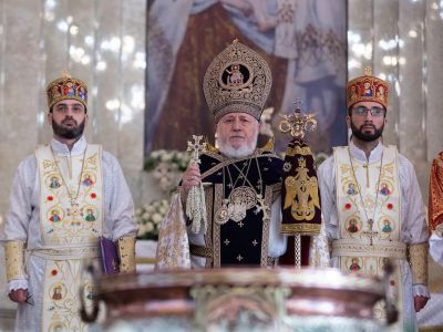 Assisting His Holiness during the Divine Liturgy were His Grace Bishop Moushegh Babayan, Grand Sacristan of the Mother See and Chairman of the Monastic Council of the Mother See; and His Grace Bishop Anushavan Jamkochyan, Dean of the Theological Faculty of Yerevan State University and Dean of St. Gregory the Illuminator Cathedral in Yerevan.