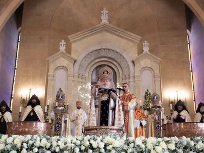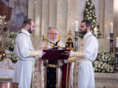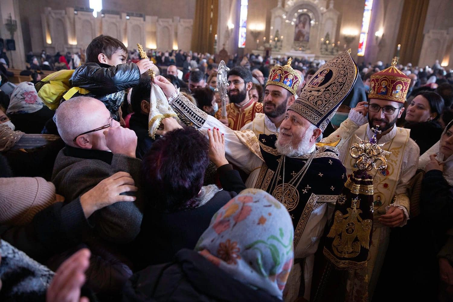 In the current difficult situation, we need to sober up, reject the paths that draw us away from God, firmly anchor our lives on the national and spiritual values, that have been passed down through the centuries, and guaranteed the survival of our people. We all have a sacred duty toward the memory of our children who received the crown of martyrdom for the homeland, to fight altruistically and uncompromisingly, for the sake of our homeland, for the sake of the free life of Artsakh, for the sake of a stable Armenian statehood and the unbroken preservation of our national identity. Let us always remember that the interest of the homeland is above all, and the free and safe life of our people is a priority. The realization of the vision of a strong and prosperous homeland requires a spirit and mindset of commitment and self-sacrifice, a kind and just conduct, and a way of life based on spiritual, moral values. This mission can be realized by the bright example of the Lord, who, according to His word, did not come to receive a position, a service, an honor, but to serve (Matthew 20:28). Every position and authority in the public, political, or state spheres must serve to the progress of the country, and the general welfare and security; just as in a pious family. When a position ceases to be perceived as a service, it turns into a cause of arbitrariness, of evil and unjust deeds. Meanwhile, it is by our deeds of dedication towards the nation and homeland, by showing care and love and caring for each other that we will have strength and power to overcome hardships and tribulations, and to prosper a country. With the life renewed by the mystery of the Savior's Nativity, we believe we will be able to create a new reality where mutual understanding and solidarity, uprightness and patriotism will prevail: a new reality, where every commitment will be aimed at the realization of the desires and aspirations of our people. With this vision, by the grace of Christ's salvation, dear faithful, let us transform the course of our lives, let us always walk the path of upliftment and loving life.