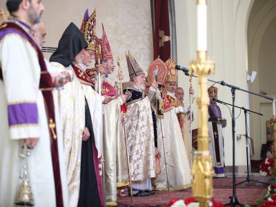 His Holiness emphasized that existing difficulties and problems can be overcome through confidence in God, and the mystery and strength of the cross. The Catholicos of All Armenians also expressed his appreciation for the support provided by American-Armenians to the Homeland, Syrian-Armenian and Iraqi-Armenian brothers and sisters, urging them to rely on the saving power of the Lord's cross to stay firm in the mission of faith and national life, and faithfully observe the spiritual message and homeland treasures.