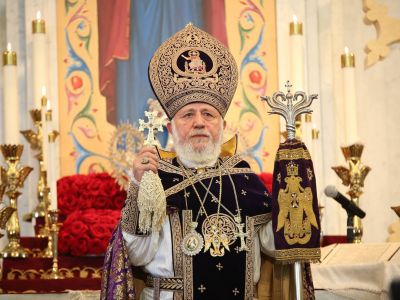 Indeed, our identity, our existence and perpetuity, are based on our Cross-shaped faith and our Cross-anointed homeland and national heritage, which today as well, are the cradle of our national and spiritual-moral essence. Our courageous sons freed Artsakh by keeping the victorious power of the Cross in their hearts and souls, and by carrying the sign of the cross on their uniforms. It is with this same faith that we reestablished our independent statehood and now continue to rebuild our life with the vision of progress and prosperity, to protect our borders and to safeguard the peace in our homeland. With the same spirit of faith our brothers and sisters in Syria and Iraq have overcome the calamities of warfare. Our people all over the world voice solidarity and join in prayers for them.”.