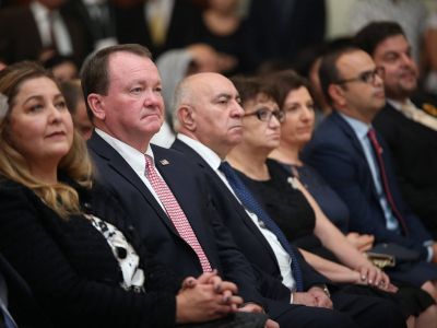 Expressing his appreciation to Mr. and Mrs. Gerald and Patricia Turpanjian on the occasion of the official dinner, His Holiness reflected with satisfaction on their good initiatives and heartfelt donations for church-building and nation-building programs. Highly appreciating the great contribution of the Turpanjian family in the national-ecclesiastical life, the Catholicos of All Armenians awarded Mr. Gerald Turpanjian the High Pontifical order of “Knight of Holy Etchmiadzin”.