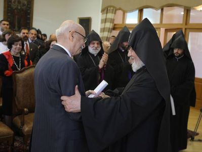 The ceremony was concluded with the blessings of His Holiness. His Holiness conveyed his personal appreciation to all those who continue pursuing the mission of the Karagheusian Foundation and who zealously implement the vision of Mr. Mihran and Mrs. Zabel Karagheusian, extending their resources to the nation's needy children living across the world.