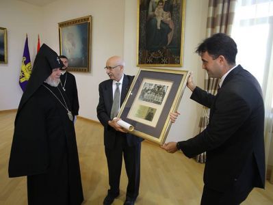 Following the reading of the Encyclical, Mr. Michael Haratunian spoke on behalf of the board members and staff, extending his remarks of gratitude. “This Encyclical is a great honor for us and with a great respect we receive it in on the sacred grounds of the Mother See”, stated Mr. Haratunian. He also reflected on the humble Karagheusian family’s important patriotic cause. On this occasion, Mr. Haratunian presented the Mother See with a group photo of the first Armenian orphans who had received assistance at the Howard Karagheusian Home for children in Constantinople.