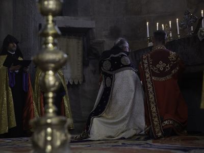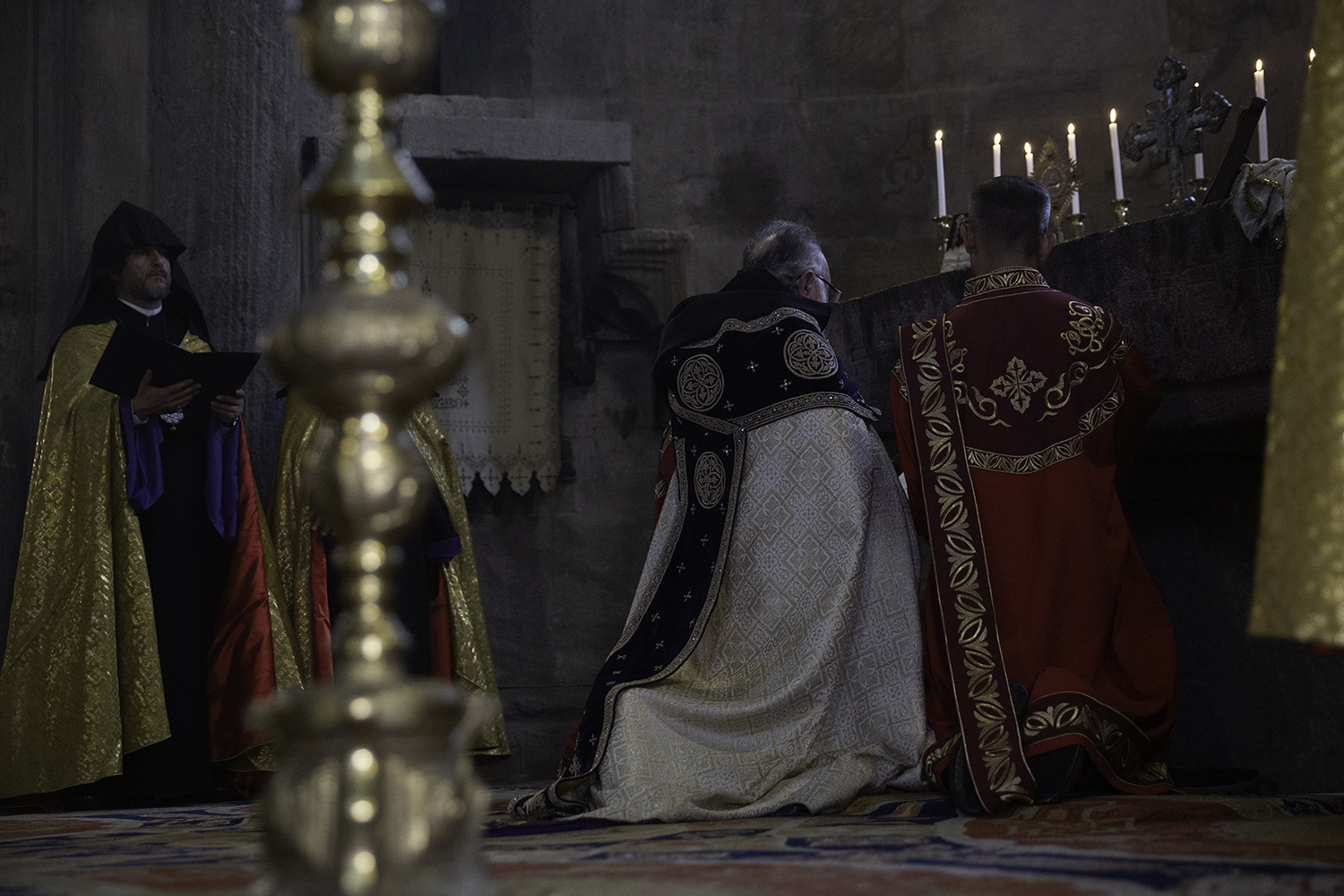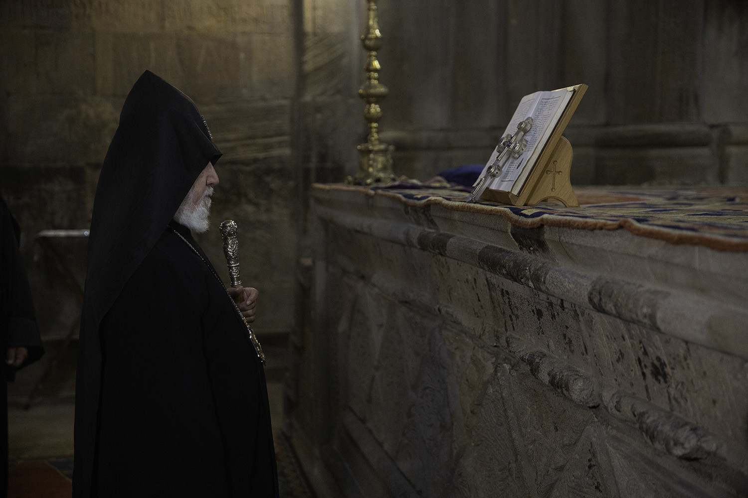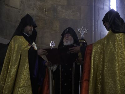 With “Hrashapar” Service, the Ecclesiastical procession led His Holiness to the historical Temple, where the relics of St. John the Baptist are kept; and, a Pontifical Prayer Service was offered, under the presidency of u the Pontiff of All Armenians.