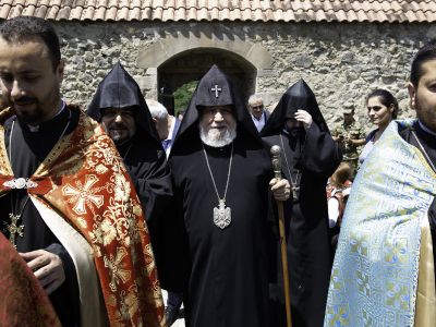On June 05, His Holiness Karekin II, Supreme Patriarch and Catholicos of All Armenians; together with His Grace Bishop Vertanes Abrahamyan, Primate of the Diocese of Artsakh; and Mr. Arayik Harutyunyan, President of Artsakh; accompanied by the Clergy; visited the Gandzasar Monastery.