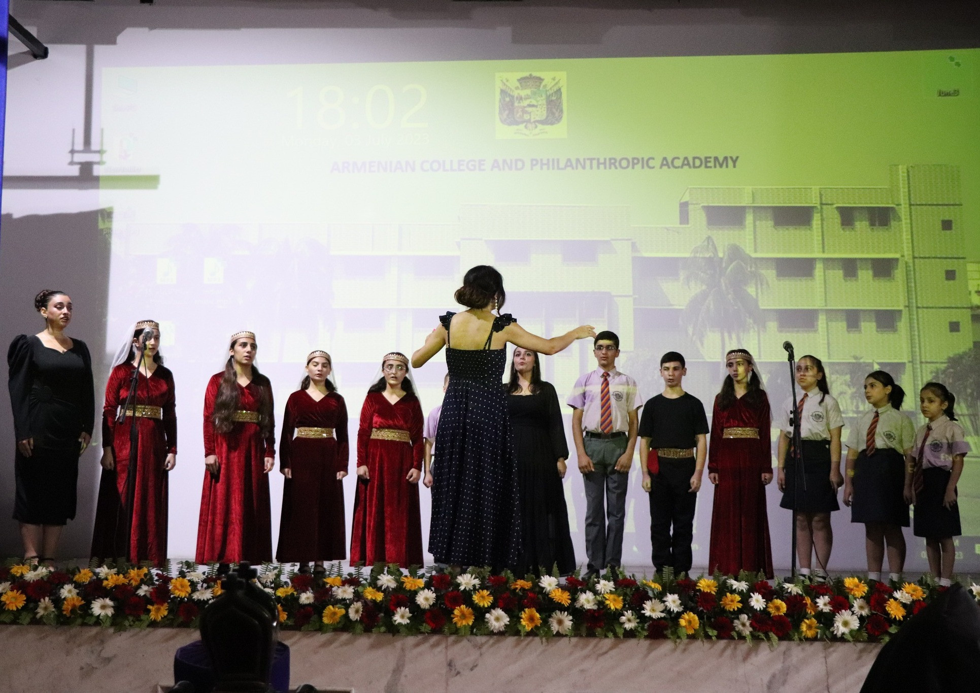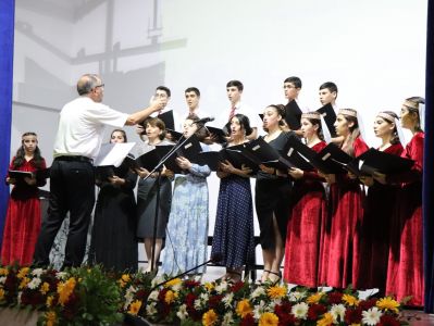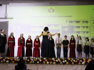 After the Director's remarks, the artistic part of the event began: the student choir of the Academy performed the songs "Nubar, Nubar" by Tatul Altunyan, "He was a light" by Komitas Vardapet, "Girl, your name is Shushan" (choir leader: Ani Tiratsuyan). The choir consisting of teachers and students perfectly performed the Bengali songs "Anandaloke" by Rabindranath Tagor, "Kuzhn ara", "Go, go" by Komitas Vardapet, "Spring is coming" by Aleksey Hekimyan (choir leader: Vachagan Tadevosyan, accompanist: Narine Sahakyan). The song "Sareri Hovin Mernem" was performed by Ani Tiratsuyan's beautiful solo.