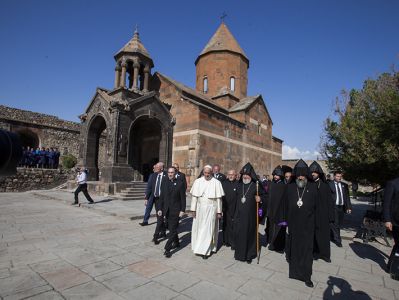 On June 26, His Holiness Karekin II, Supreme Patriarch and Catholicos of All Armenians and the Pope of the Roman Catholic Church, accompanied by their delegations visited Khor Virap, where they were welcomed by His Grace Bishop Artak Tigranyan, Dean of the Monasteries of the Mother See of Holy Etchmiadzin, Bishops of the Armenian Church and clergy.