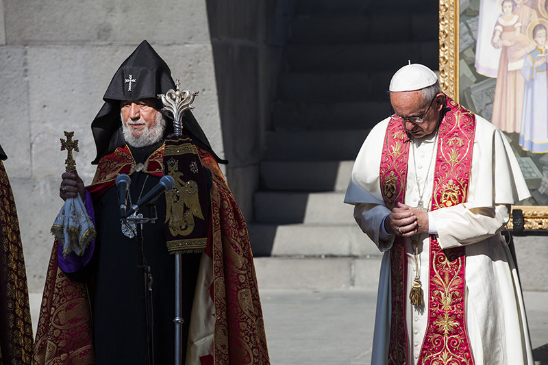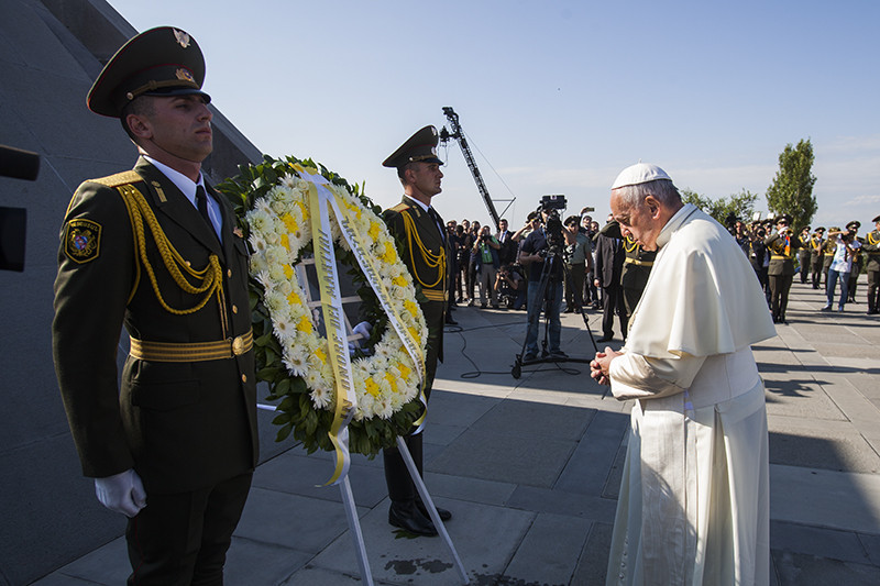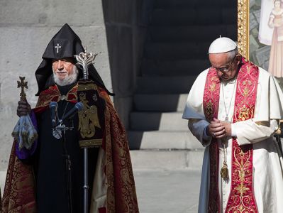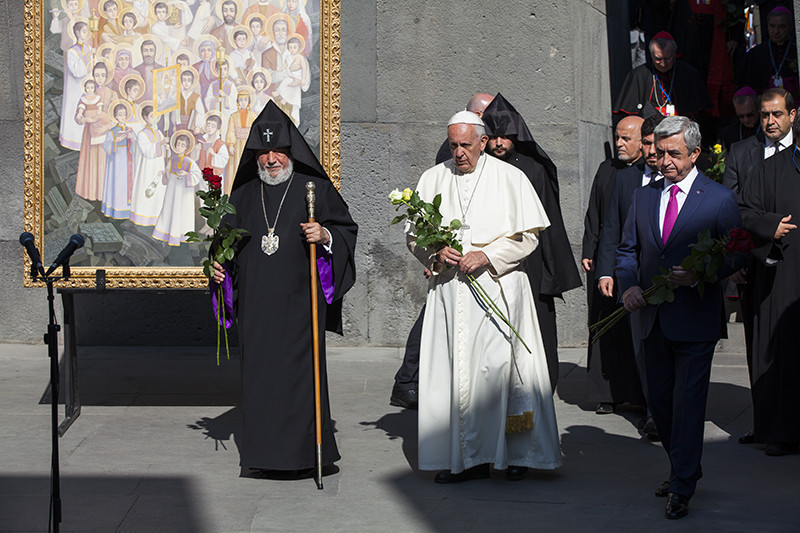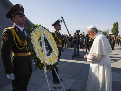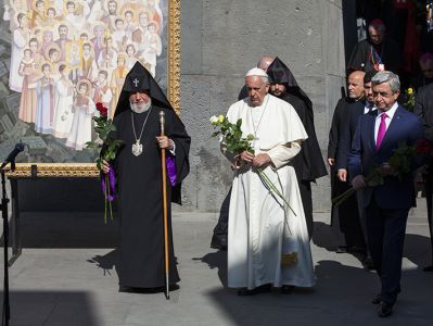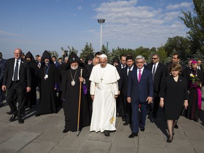 On June 25, Pope Francis of the Roman Catholic Church and His Holiness Karekin II, Supreme Patriarch and Catholicos of All Armenians; visited the Tsitsernakaberd Genocide Memorial Complex, where the two Pontiffs were met by Mr. Serzh Sargsyan, President of the Republic of Armenia and the First Lady Ms. Rita Sargsyan.