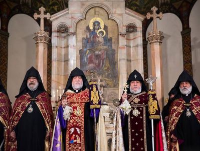 During the prayer, the spiritual leaders and the faithful unanimously prayed for the safety and welfare of the Republic of Armenia, as well as for a peaceful and progressive life. His Holiness Karekin II, Supreme Patriarch; and the Catholicos of the Great House of Cilicia, appealed to the Father of the Heavenly Lord to the worldwide Armenian nation.