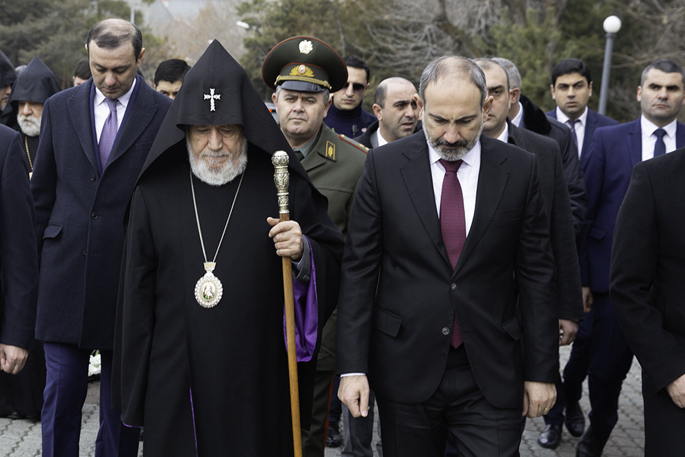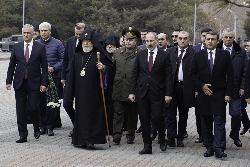 On February 28, on the occasion the anniversary of the pogroms in Sumgait, His Holiness Karekin II, Supreme Patriarch and Catholicos of All Armenians; accompanied by the Brotherhood members of the Mother See of Holy Etchmiadzin, visited the Tsitsernakaberd Genocide Memorial, where His Holiness along with the Prime Minister of the Republic of Armenia Mr. Nikol Pashinyan and state officials, paid tribute to the victims of Sumgait Pogroms.