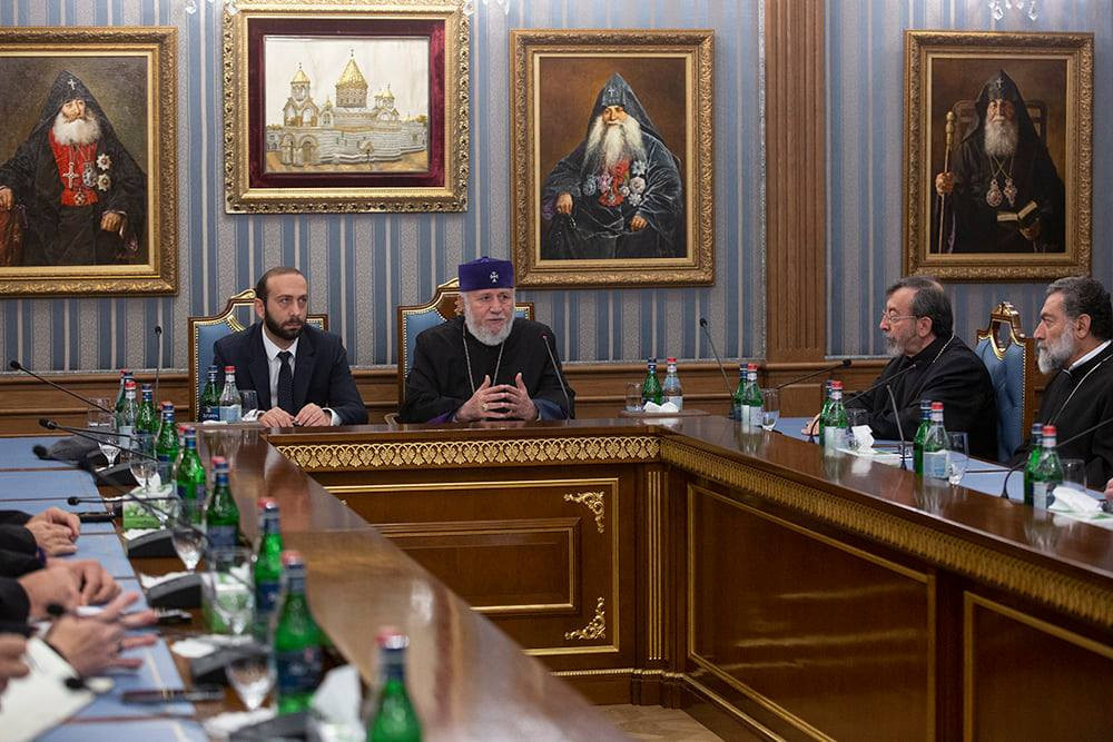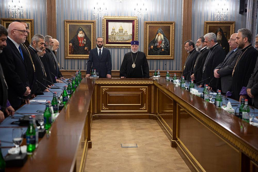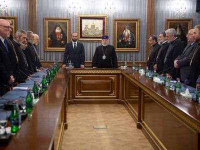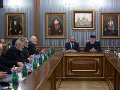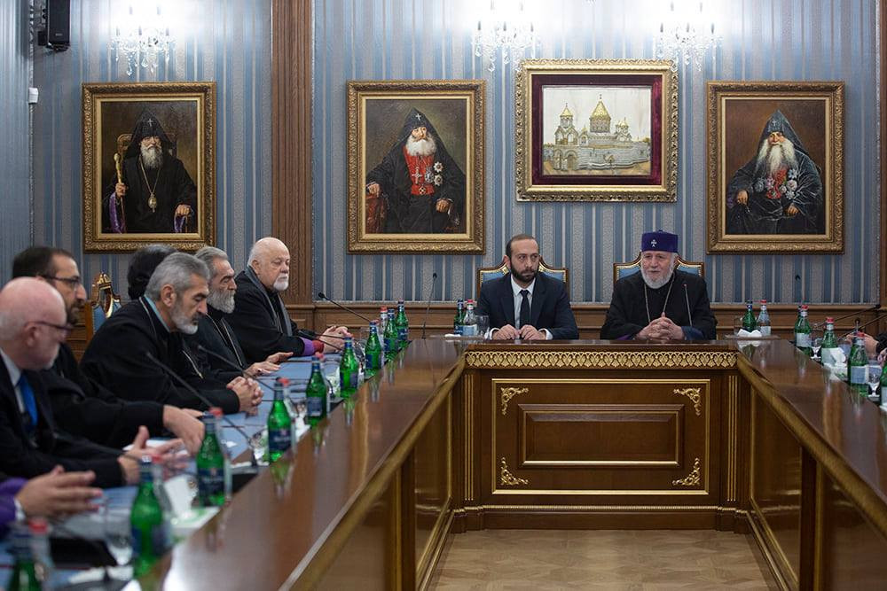On November 02, Mr. Ararat Mirzoyan, President of the National Assembly of Armenia, visited the Mother See of Holy Etchmiadzin, and met His Holiness Karekin II, Supreme Patriarch and Catholicos of All Armenians; and the participants of the Supreme Spiritual Council been held in these days in the Mother See of Holy Etchmiadzin.