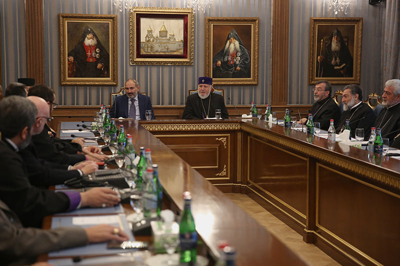 Following this, the RA Prime Minister Nikol Pashinyan conveyed his remarks to the attendees. “Of course, there is the need of such kind of meetings and, perhaps, even more often than it happens. In general, of course, as His Holiness stated, the discussions concerning to the State-Church relationships are very important, especially in the new situation and new conditions that we have in the Republic of Armenia today.