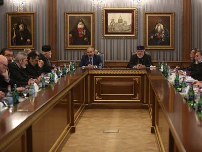 In general, when it comes to the State-Church relations, firstly, I understand not only the arrangement of the material relationships, which also have essential importance, but the discussion in terms of the spiritual life, spiritual values and spiritual atmosphere...”, stated the RA Prime Minister. In his remarks, Mr. Nikol Pashinyan emphasized the importance of solving the problems in society through open, frank, and direct dialogues and discussions in the atmosphere of mutual respect.
