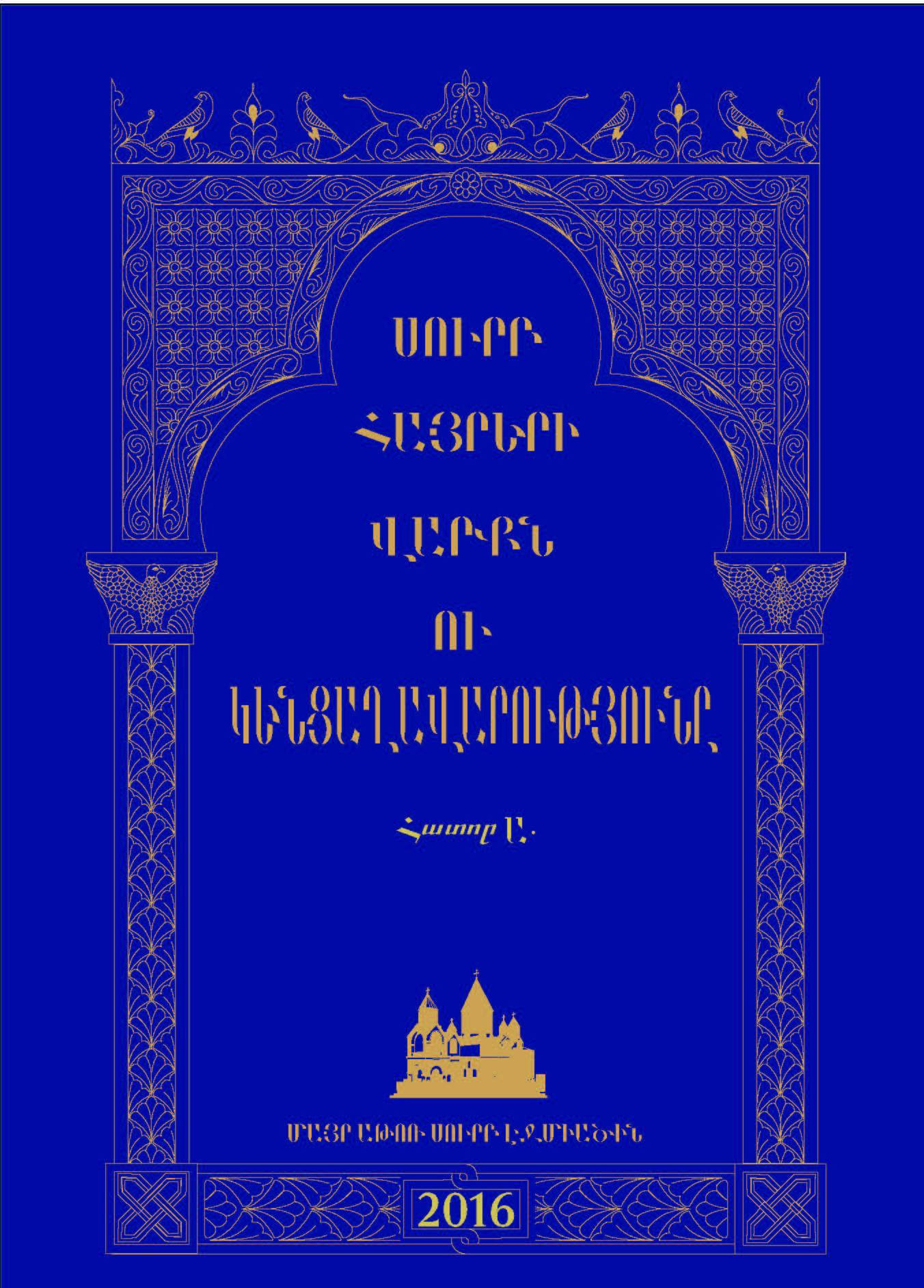The section “Thoughts and Histories of the Fathers” within the “Biographies of the Holy Church Fathers and their Acts” (Venice, 1855), was newly translated into Armenian. The translation was done by Very Rev. Fr. Shahe Ananyan, Director of the Publishing Department of the Mother See; Ms. Siranush (Nana) Grigoryan and Mr. Vagharshak Tangamyan.