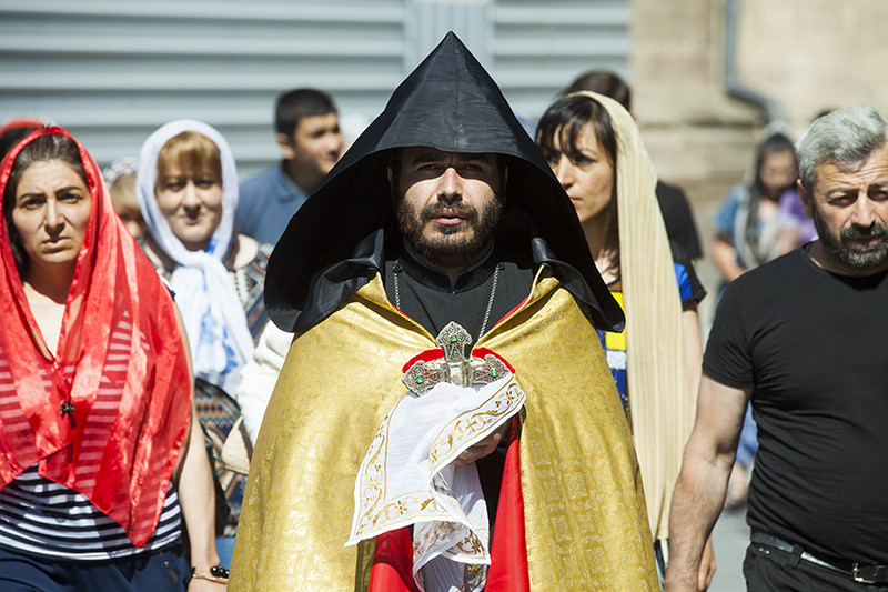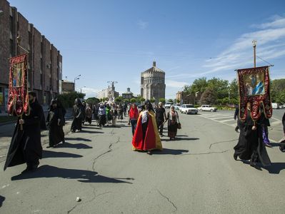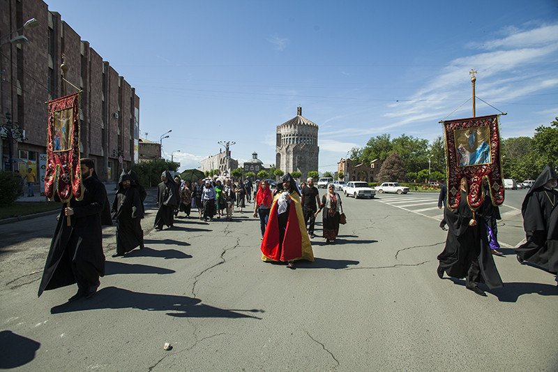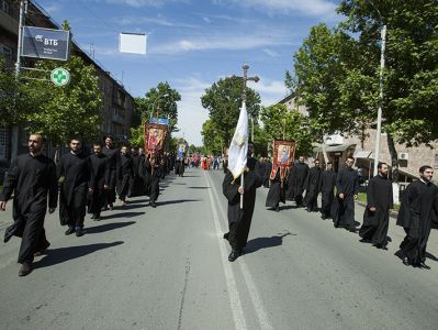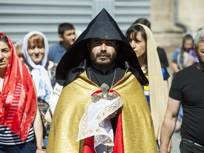In the morning, an ecclesiastical procession, accompanied by numerous pilgrims, carried the cross-reliquary of St. John the Baptist. The cross-reliquary was carried by His Grace Bishop Gevorg Saroyan, Dean of the spiritual and higher education institutions of Mother See of Holy Etchmiadzin.