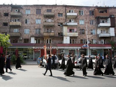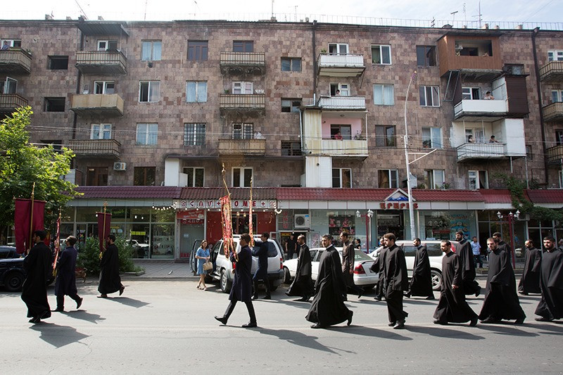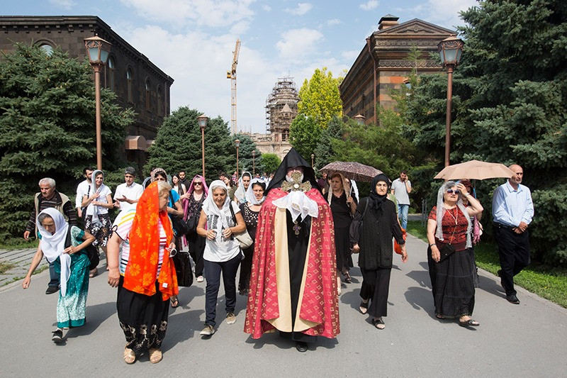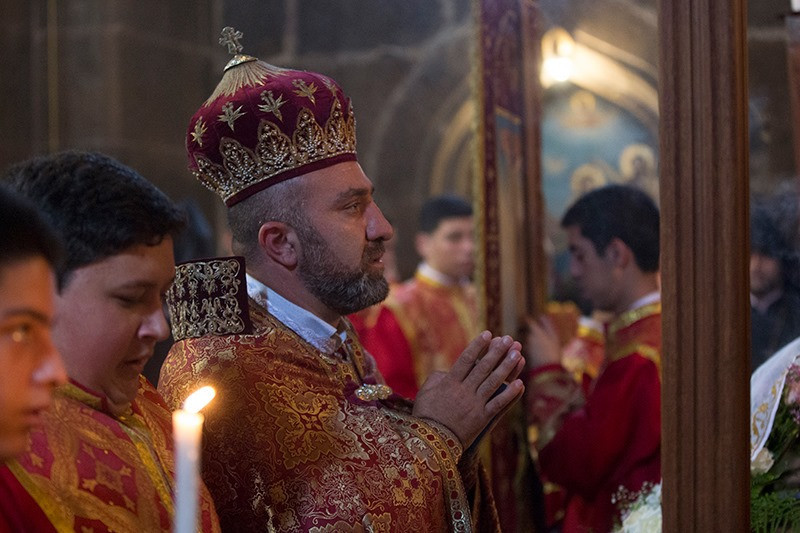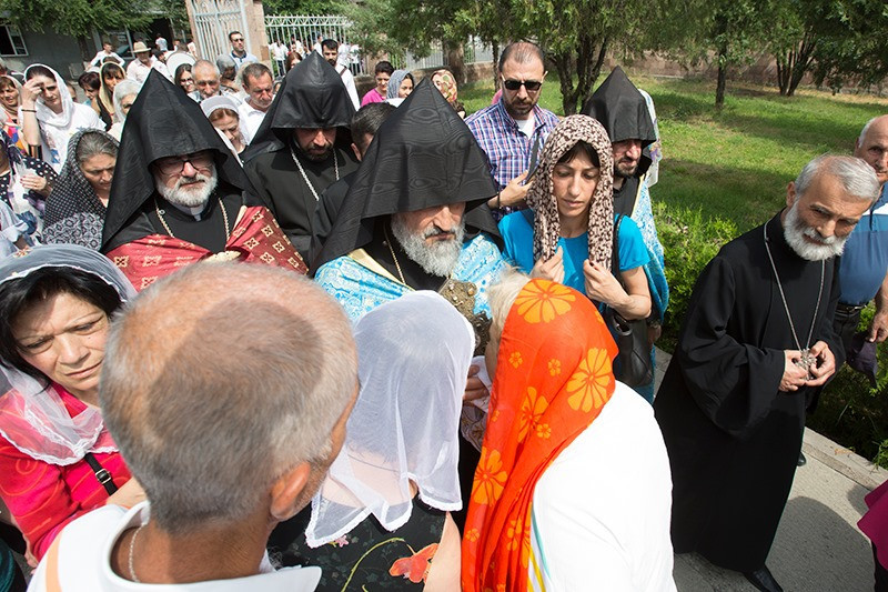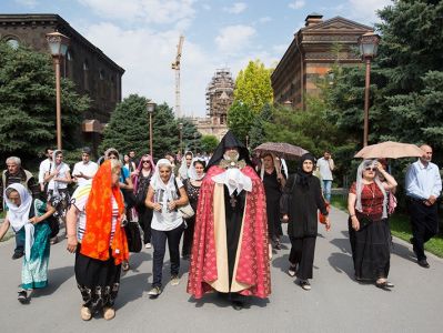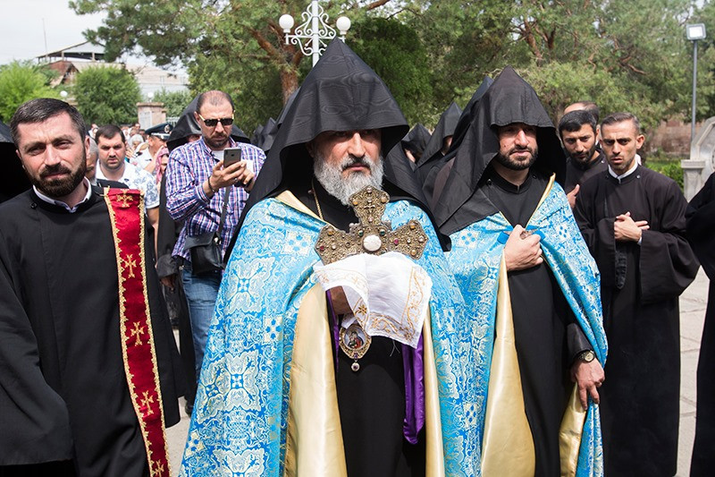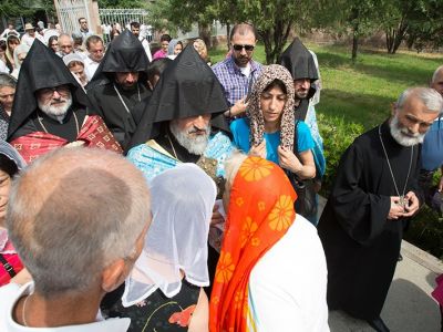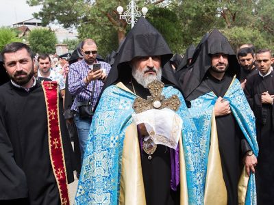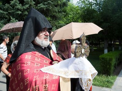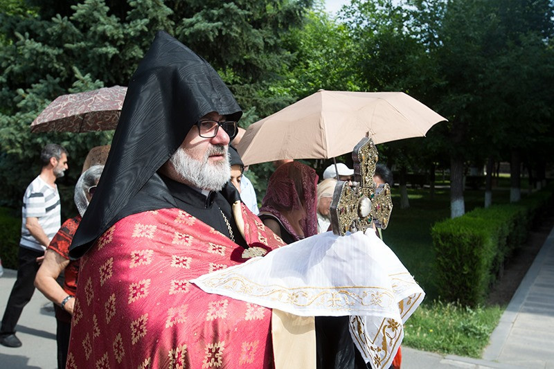 In the morning, an ecclesiastical procession, accompanied by numerous pilgrims, carried the cross-reliquary of St. John the Baptist. The cross-reliquary was carried by Rev. Fr. Oshakan Kyulkyulyan, Spiritual serva nt of the Eastern Diocese of the Armenian Church of North America.