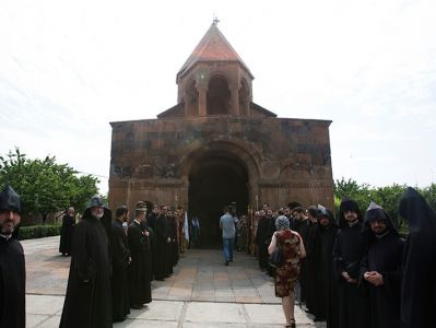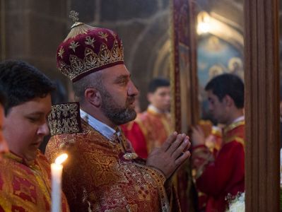 The procession was met in front of the Holy Shoghakat Monastery by the clergy and His Grace Bishop Artak Tigranyan, Dean of the Monasteries of the Mother See.
