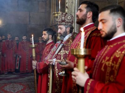 Prior to the repose of the souls service, His Grace Bishop Moushegh Babayan, Grand Sacristan of the Mother See, referring to the painful incident that took place in the border zone the other day, invited the clergymen and the faithful people present to pray for the peace of the souls of the martyred warriors, as well as for the speedy recovery of the wounded soldiers.